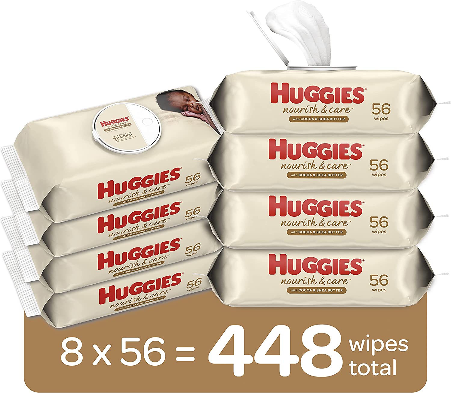 Baby Wipes, Scented, Huggies Nourish & Care Baby Diaper Wipes, 8 Push Button Packs (448 Wipes Total)