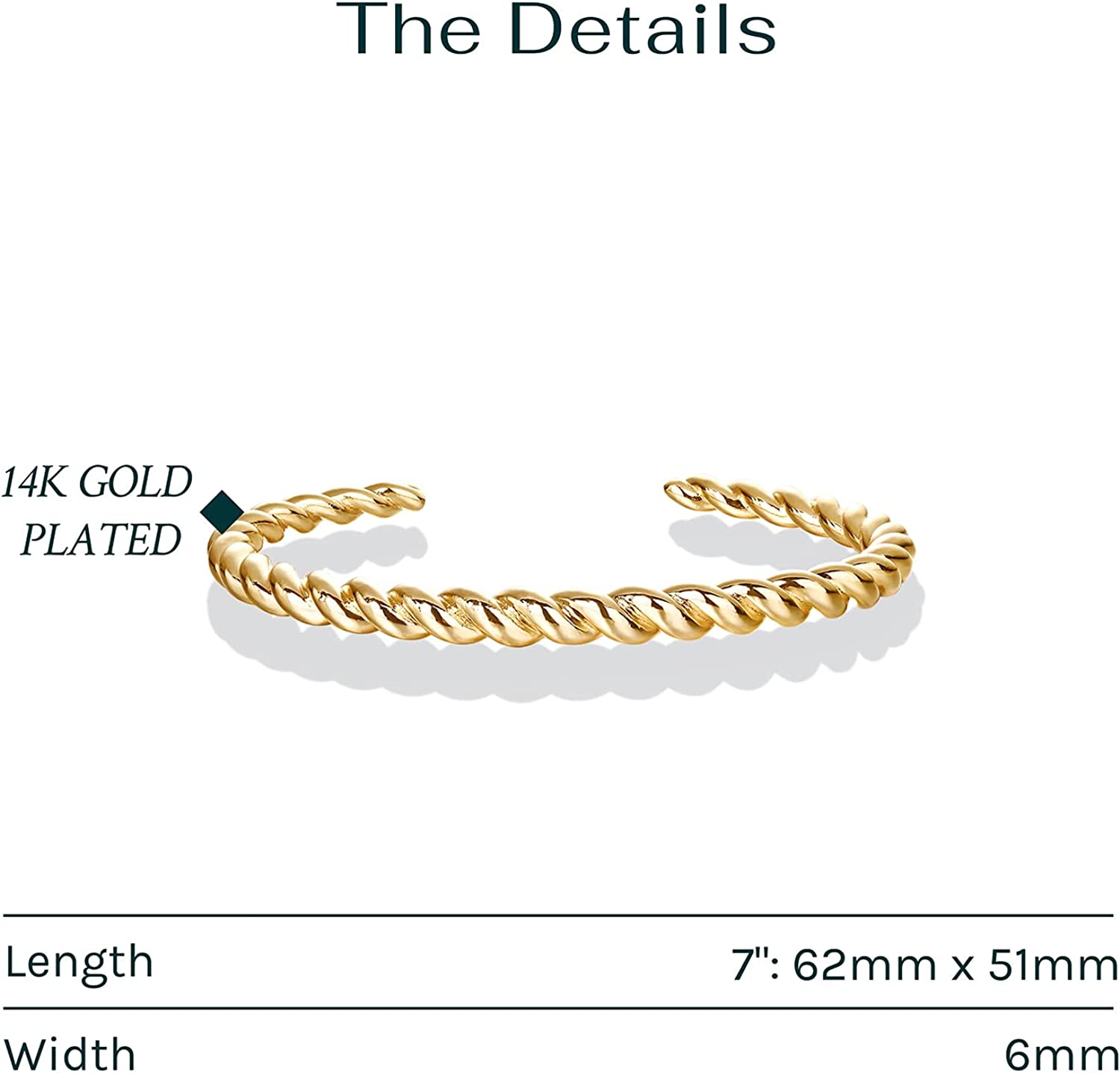 A twisted, trendy design to wear with a little black dress or a sweatsuit. A luxe looking, 14K gold plated bracelet that is perfect to put on everyday.
