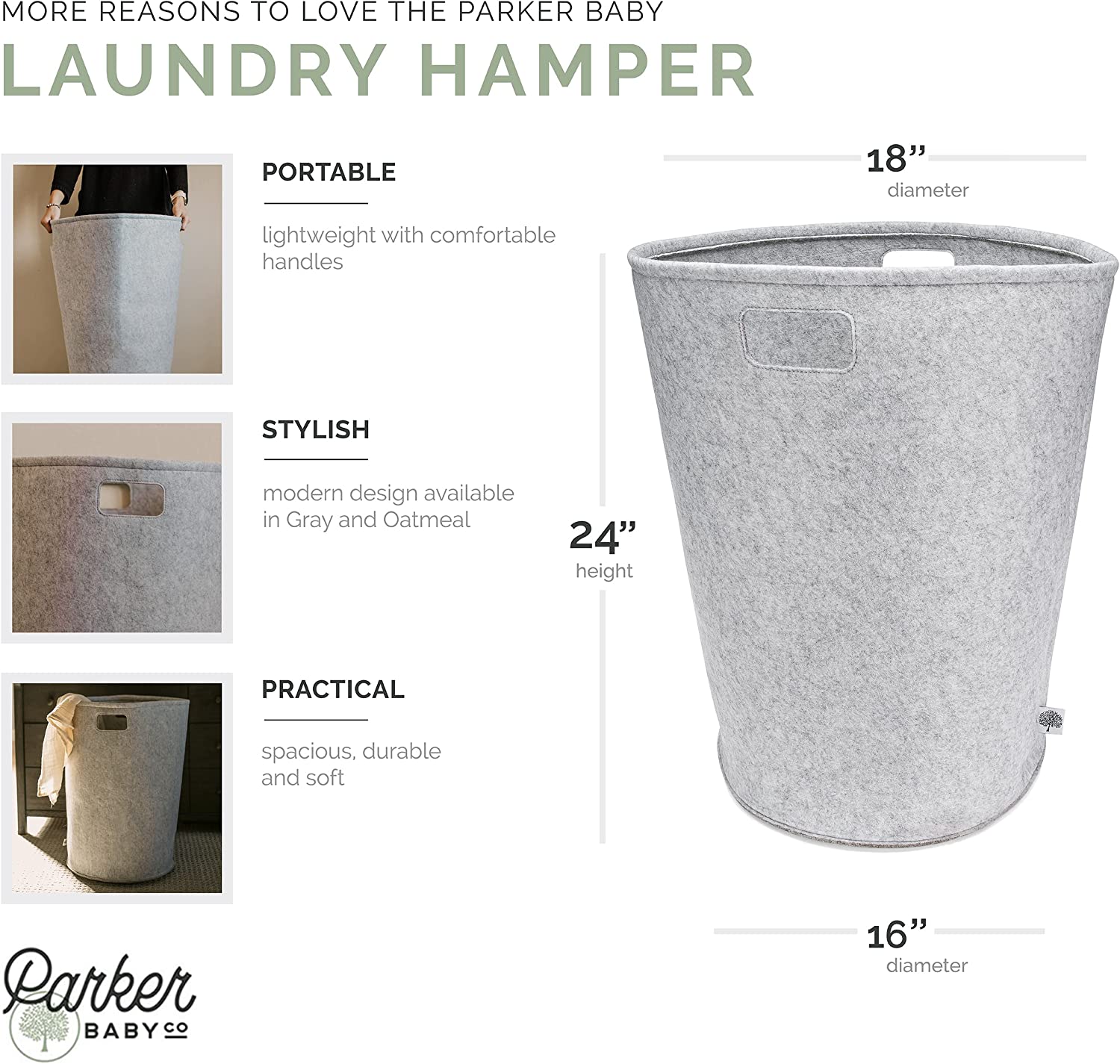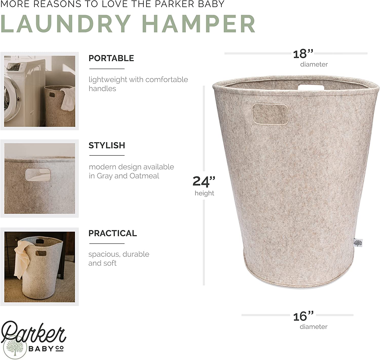 Parker Baby Nursery Laundry Hamper - Felt Storage Basket and Baby Hamper for Nursery (Oatmeal)
