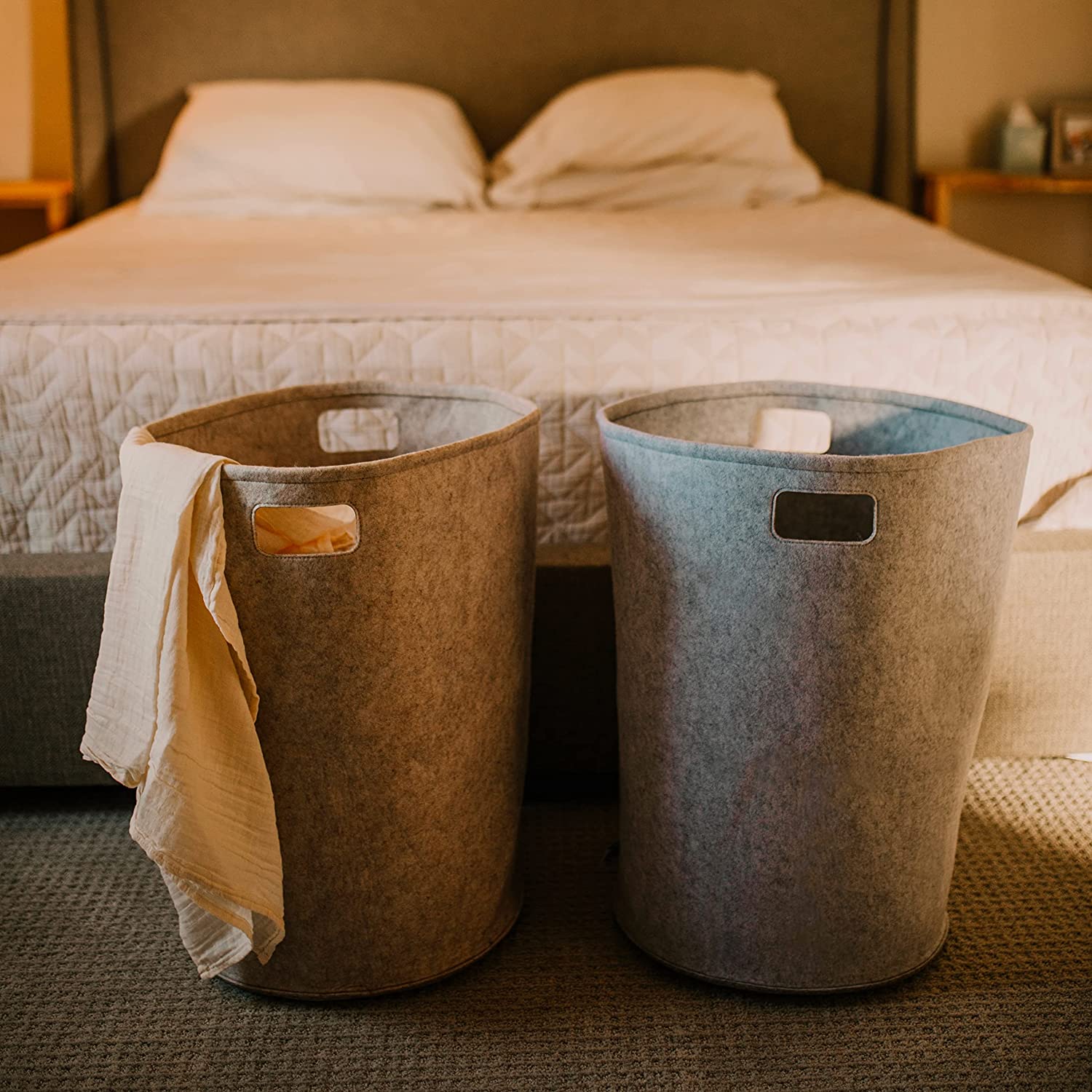 • NATURAL, MODERN DESIGN THAT COMPLIMENTS YOUR DECOR - Our felt storage basket can be used in every room in the house. Not only does it look great next to a changing table or with your other nursery decor, the neutral tones and modern design will also look great with our other home decor. It is truly a storage basket for kids and adults alike!