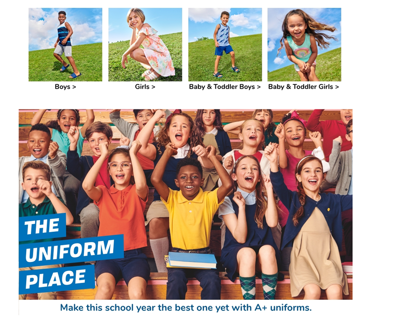 - THE CHILDREN'S PLACE — We offer a huge selection of kid's clothing! Shop us for jeans, shorts, leggings, chinos, polo shirts, dresses, uniforms, pajamas, and accessories.
