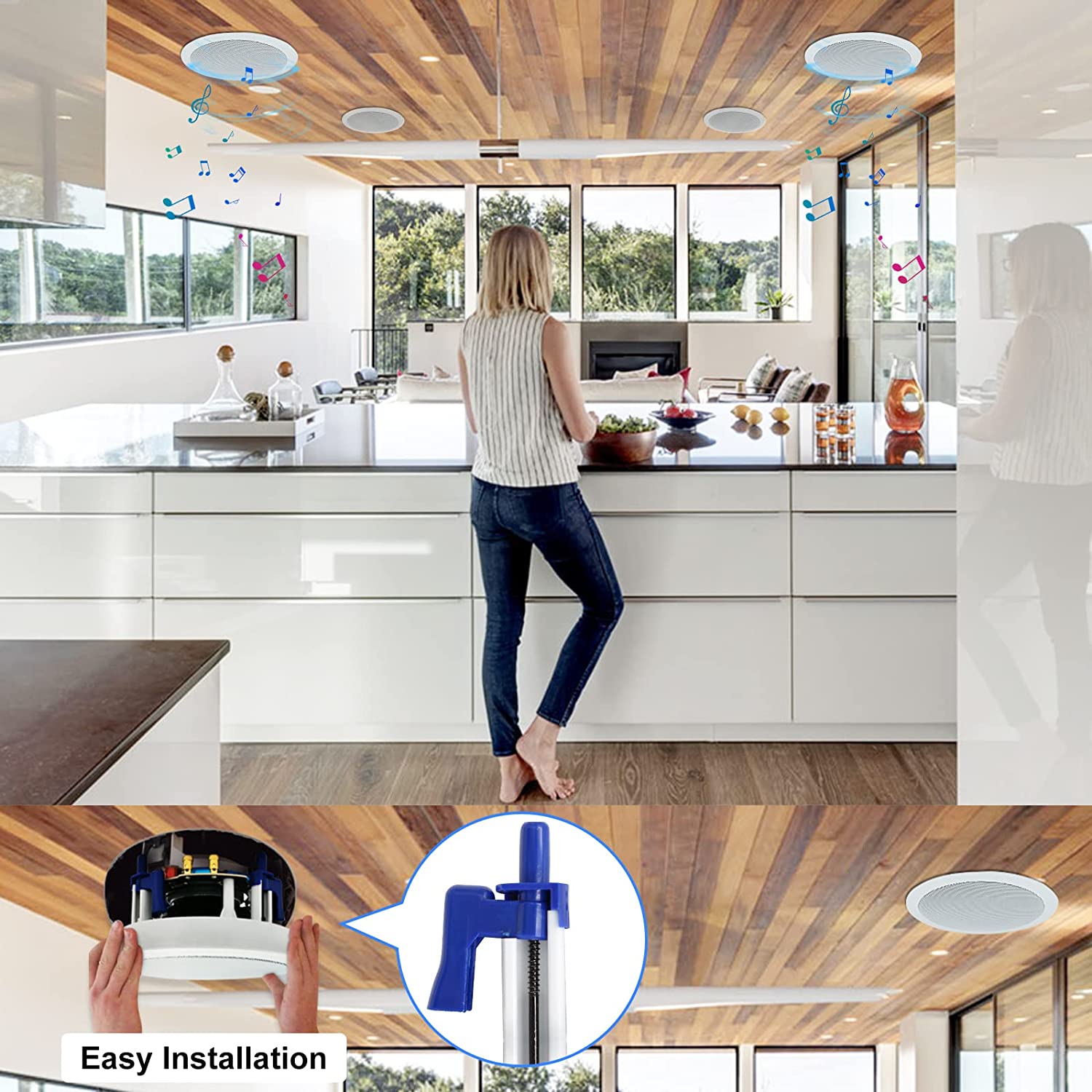 【Easy to Install】The ceiling speakers use in a compact flush mount design for simple easy installation in-wall / in-ceiling , or pre-cut speaker openings, perfect for in home use, office, professional, or custom audio applications on any flat surface