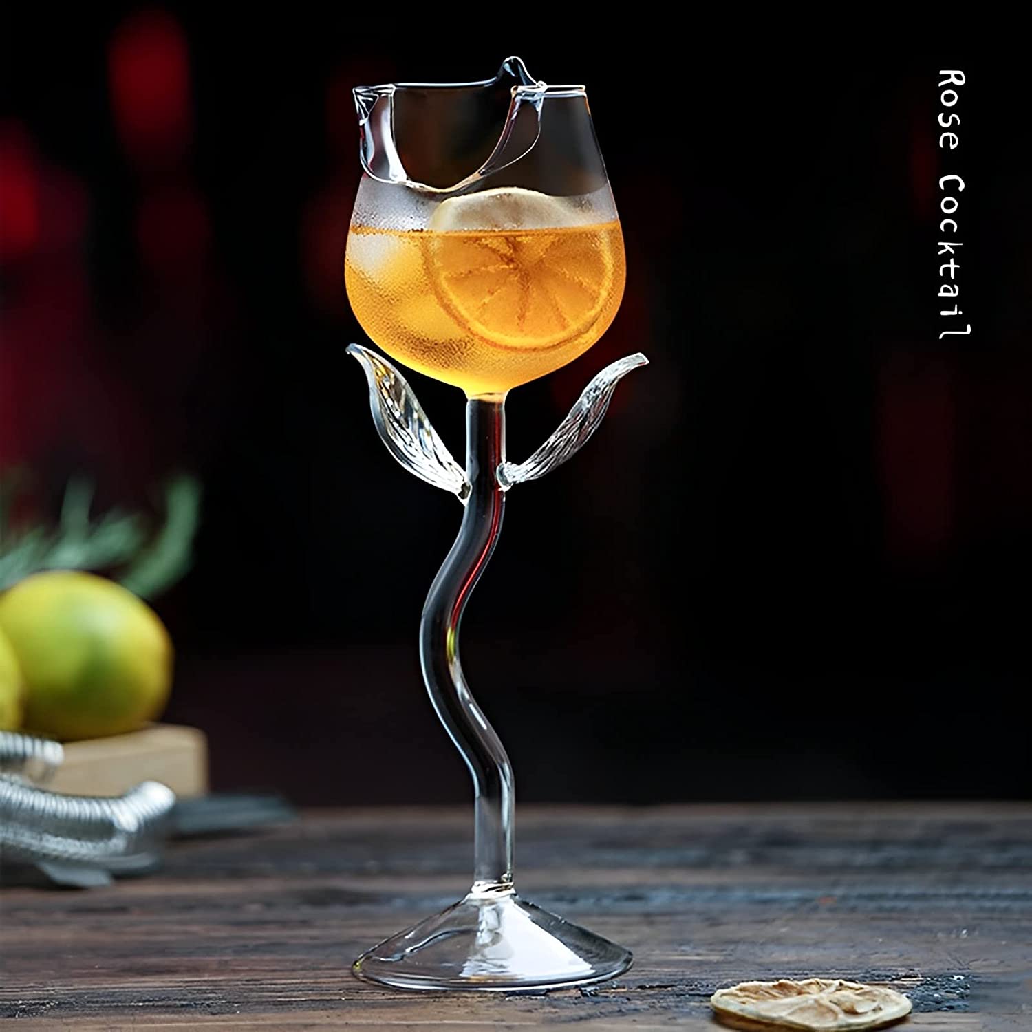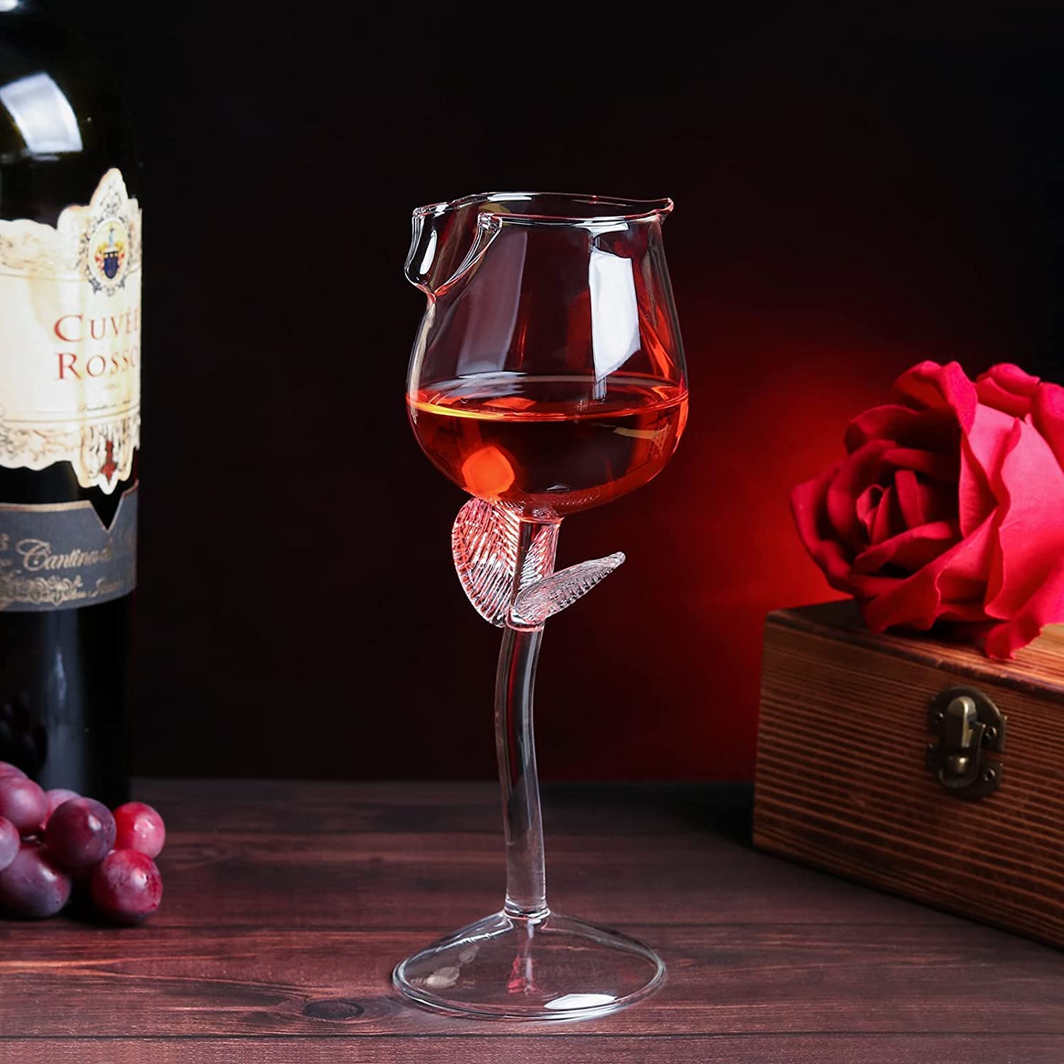 PolSurdy Rose Flower Wine Glasses, Creative Red Wine Glass Set of 2 for Women, Goblet Wine Cocktail Juice Glass for Housewarming, Wedding, Kitchen Bar Celebration (6OZ,2Pcs)