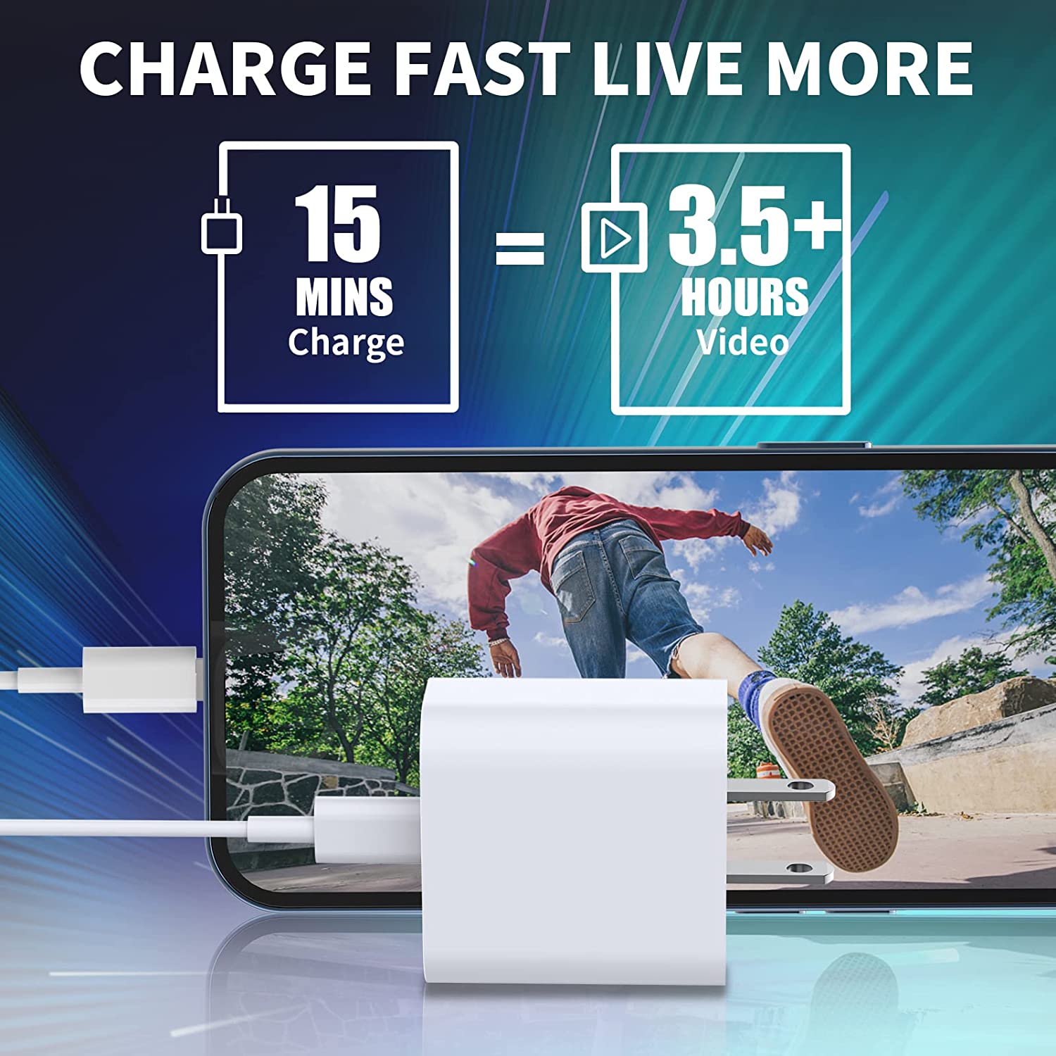 • 【20W Super Fast Charging for iPhone】: Using highly efficient components and an advanced chipset, Rombica's Power Delivery 3.0 technology is perfectly compatible with iPhone 14. Equipped with a PD Fast Charger Type C port which provides you Max 20W output power. the charging speed is 3 times faster than the standard adapter, Up to 50% in just 30 min. Fast charge your iPhone from zero up to 100% in just 90 min, 3 times as fast as Standard Charger. Saving over 1.8hrs for you.