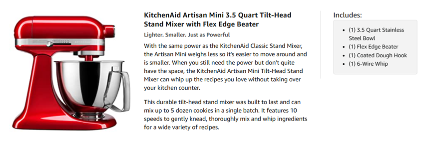 Lighter. Smaller. Just as Powerful.* When you still need the power but don't quite have the space, the KitchenAid® Artisan® Mini Tilt-Head Stand Mixer can whip up the recipes you love without taking over your kitchen counter. This durable tilt-head stand mixer was built to last, and can mix up to 5 dozen** cookies in a single batch. It features 10 speeds to gently knead, thoroughly mix and whip ingredients for a wide variety of recipes. Whether you're craving fresh guacamole, gently shredded pulled pork or a single, flavorful pan of meatloaf, the Artisan Mini can help you create a variety of small-batch, hand-crafted possibilities. Get creative and make more with your mixer with over 10 optional hub-powered attachments***, from food grinders to pasta makers and more. *Compared with the KitchenAid® Classic™ Stand Mixer. **Using the flat beater; 28g dough each ***sold separately.