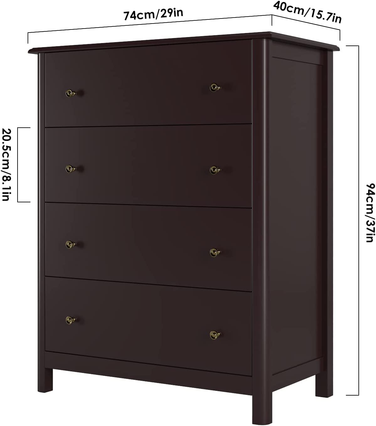 Premium Material: Crafted from high quality MDF, this chest of 4 drawers is sturdy enough to withstand daily use for many years. Alloy handle and metal slides on each layer help drawers run smoothly