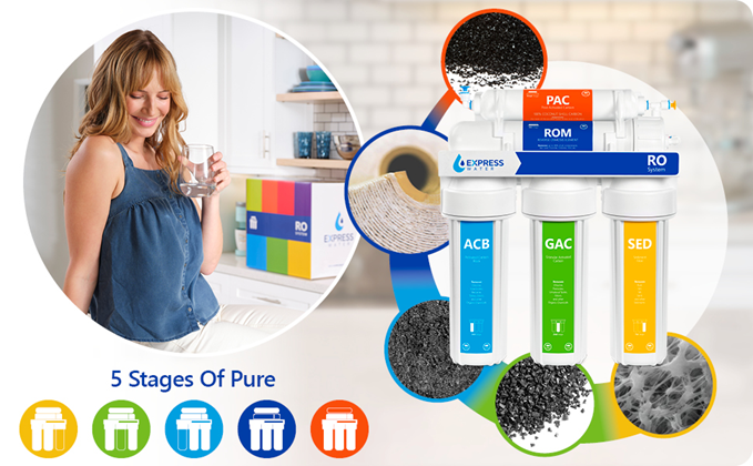 - Express Water’s 1st stage is a Sediment filter that targets dirt, dust, sand, and rust.