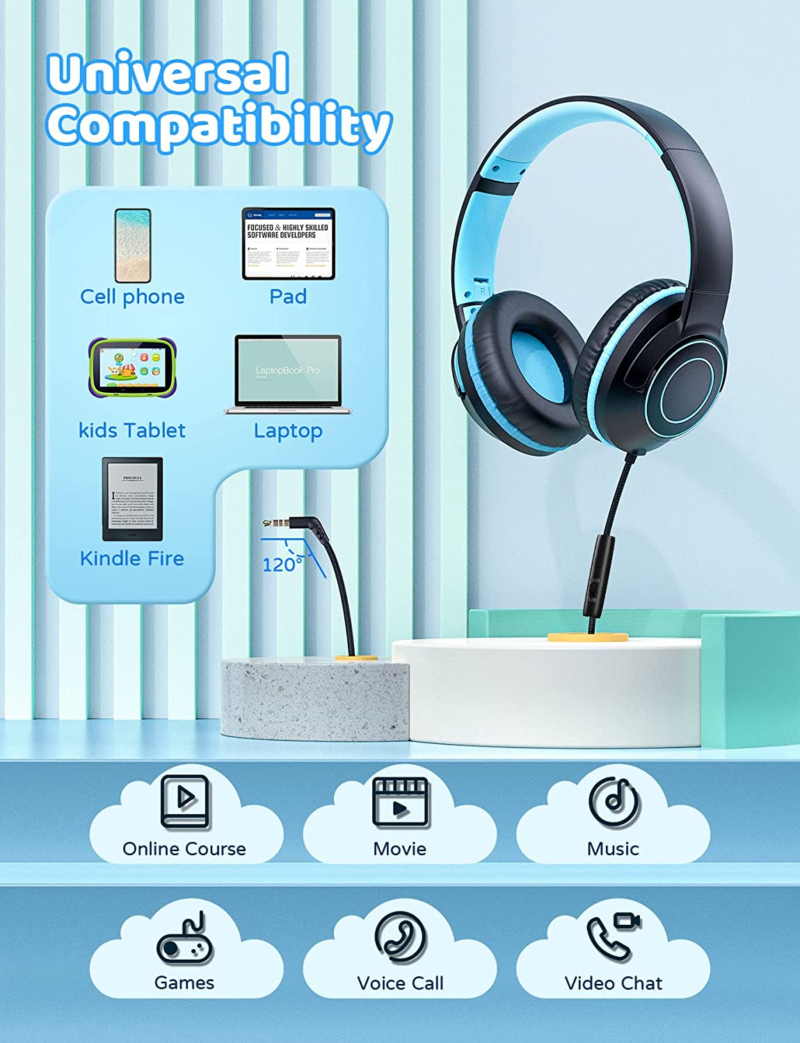 Universal Compatibility - Whatever device you have with a 3.5 mm aux input, the headphones will work just fine, such as Chromebook, Kindle Fire, Switch, iPad, Smartphone, Study Tablet, Laptop and more.