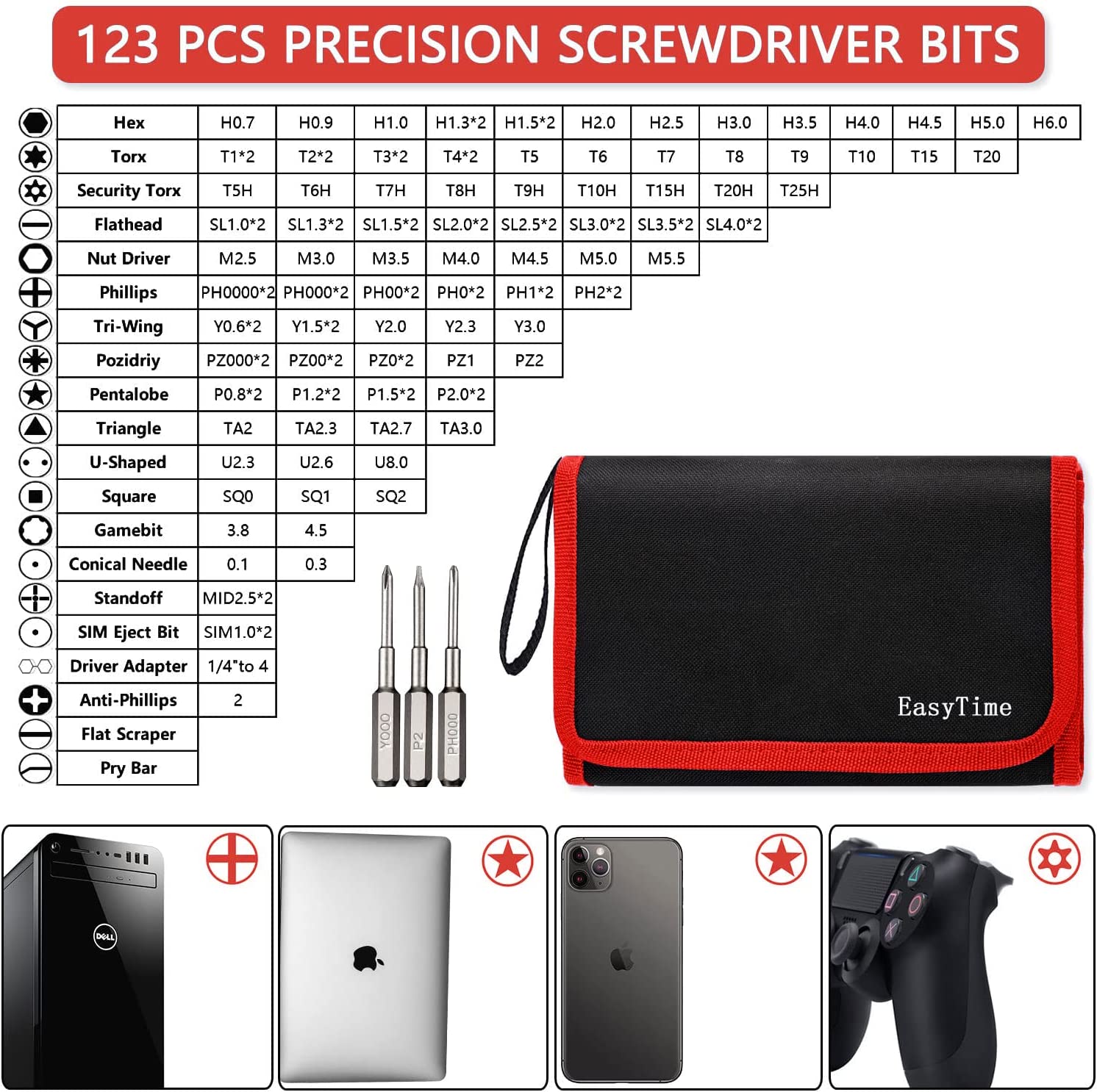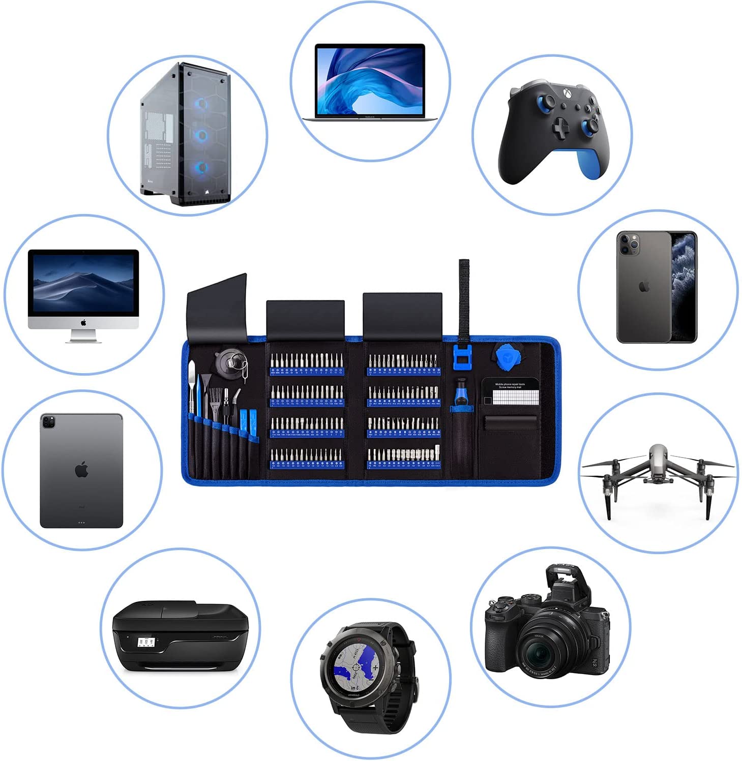 【Repair Various Electronic device】This computer screwdriver kit is designed by professional engineers through tens of thousands of repair data refining, including 123 most commonly used screwdriver bits and 23 repair tools. The laptop repair tool kit is suitable for Laptops, PC, Computers, Tablets, iPhones, iPad, MacBooks, Cell Phones, Cameras, Game Consoles, PS4/Xbox Controllers, and more. You can make it to replace battery, motherboard or screen, clean dust, build computer DIY, etc.