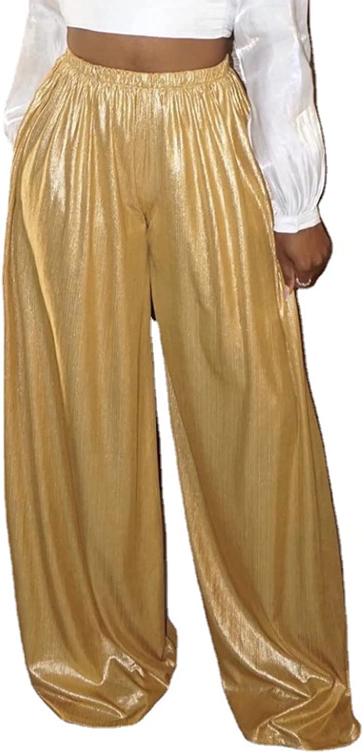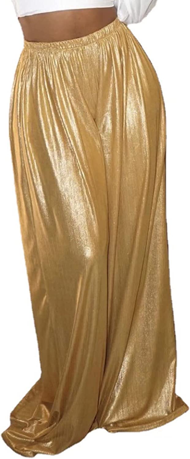 • (Runs Big) Features: high waist design, stretchy bling wide leg pants, elestic waisted loose trouser,stylish with a blouse or top and a pair of high heel, shiny design looks extremely charming and chic.