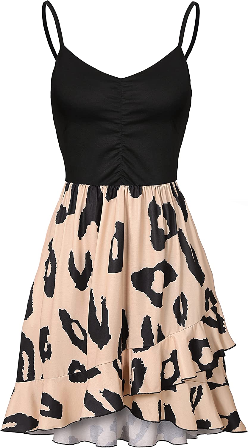 • UNIQUE FUNCTION: This women's spaghetti casual sundress is designed with flattering gathered bust and gathered skirt,hides you imperfections well.Cross and irregular ruffles flowly hem perfect sets off your leg length.makes you look more chic and attractive!
