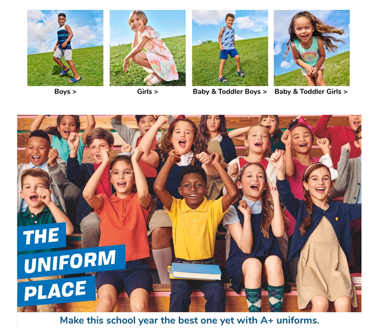 The Children’s Place offers a huge selection of kid's clothing! Shop us for jeans, shorts, leggings, chinos, polo shirts, dresses, uniforms, pajamas, and accessories. Made with premium quality materials at a great value. Kids clothing made simple.
