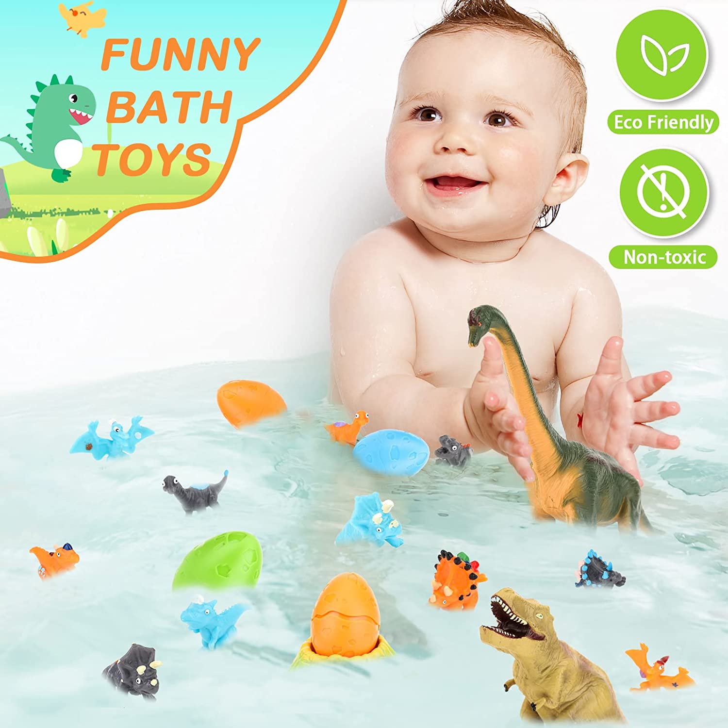 • 【Safe and Easy to Clean】Dinosaurs figures toys are made of high-quality ABS material which is safe and non-toxic for toddlers. Soft dinosaur kit is designed to be smooth and round, kids can safely play together or play them in the bathtub. All fittings are easy to clean by simply rinsing with neutral detergent or water