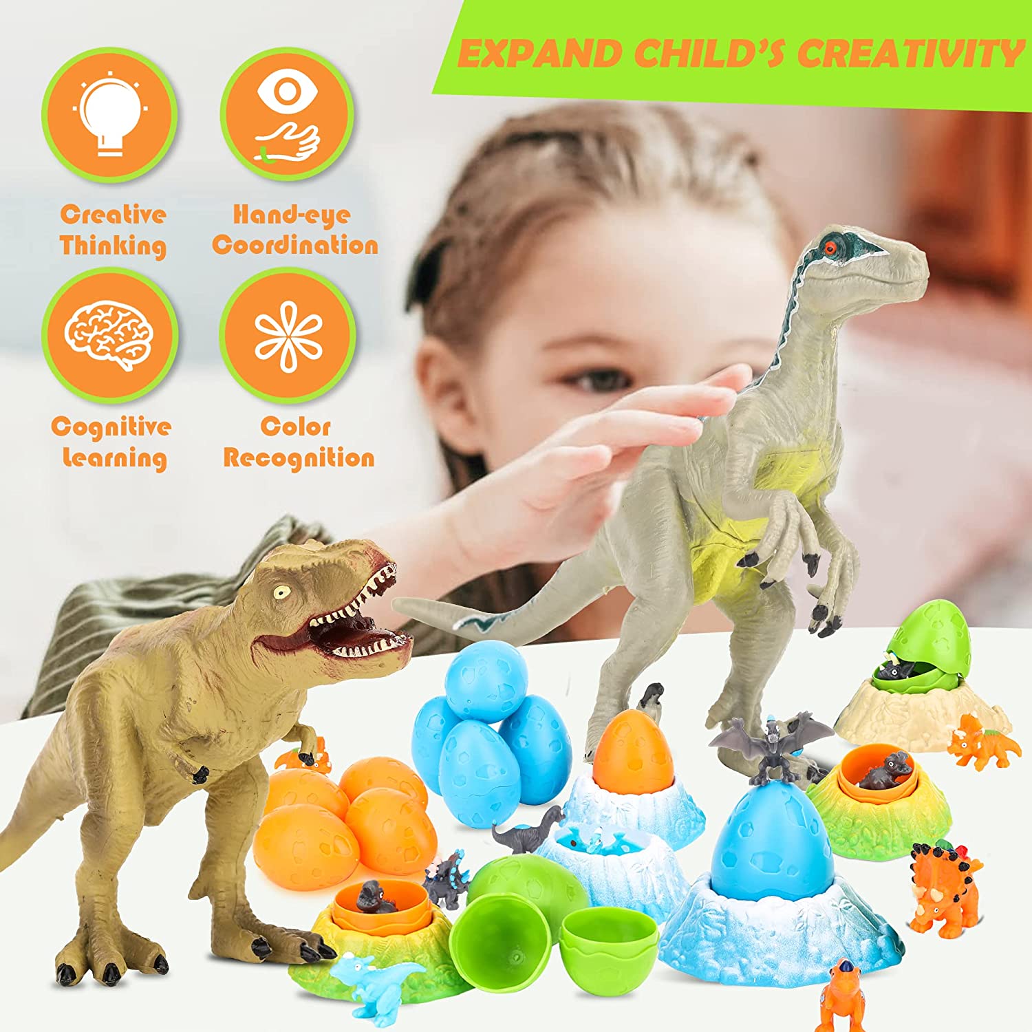 • 【Realistic Dinosaur Eggs Set】Each dino figurine is hand-painted and engraved by experts which looks more delicate. We add natural texture to the surface of dinosaur eggs and slots. The built-in design makes the dino eggs easily open and close. Realistic dinosaur eggs can attract children to immerse themselves in dino toys