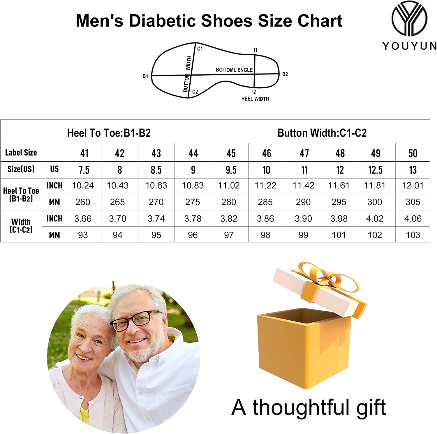 • 【Comfortable Swollen Feet Shoes】 : The diabetic shoes for men have a unique velcro design, free adjustment for different instep height. The lining can be pulled to the toes, so that your swollen feet can easily wear into the shoes, perfect fit for edema and swollen feet.