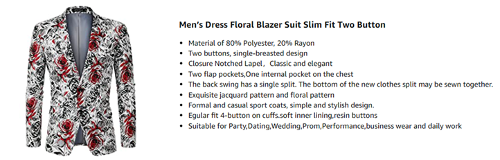 Men Floral Print Blazer Jacket Material:Polyester Viscose Blended