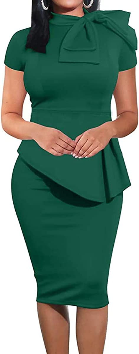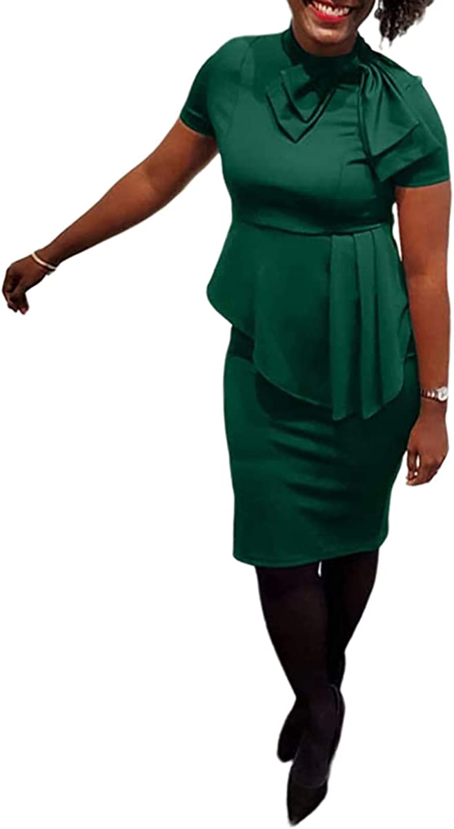 HipGlamp Women's Fashion Peplum Bodycon Dresses Short Sleeve Bow Club Ruffle Pencil Party Dress