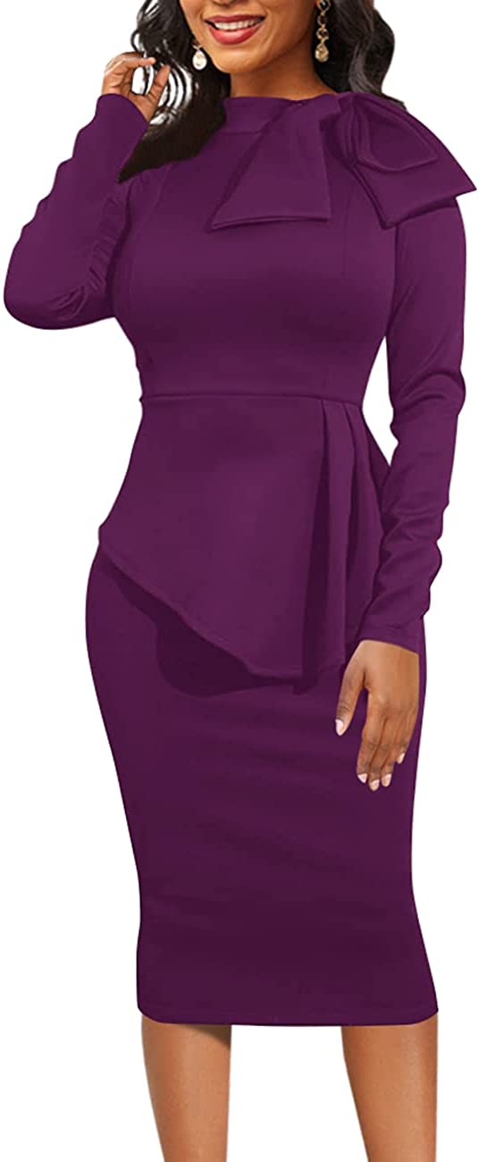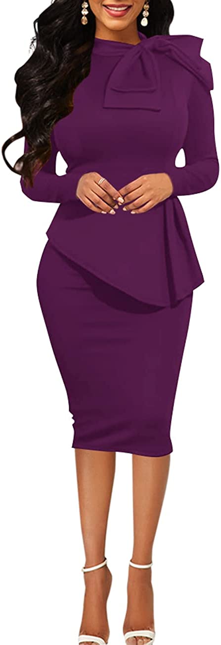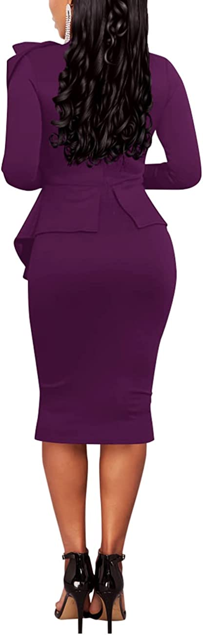 • Features: Back zipper closure, little stretchy, peplum dress, side ruffle, Turtle Neck,Slim Fit,Knee Length,Midi Dress,Long Sleeve,This dress is absolutely amazing and it fits your curves perfectly.