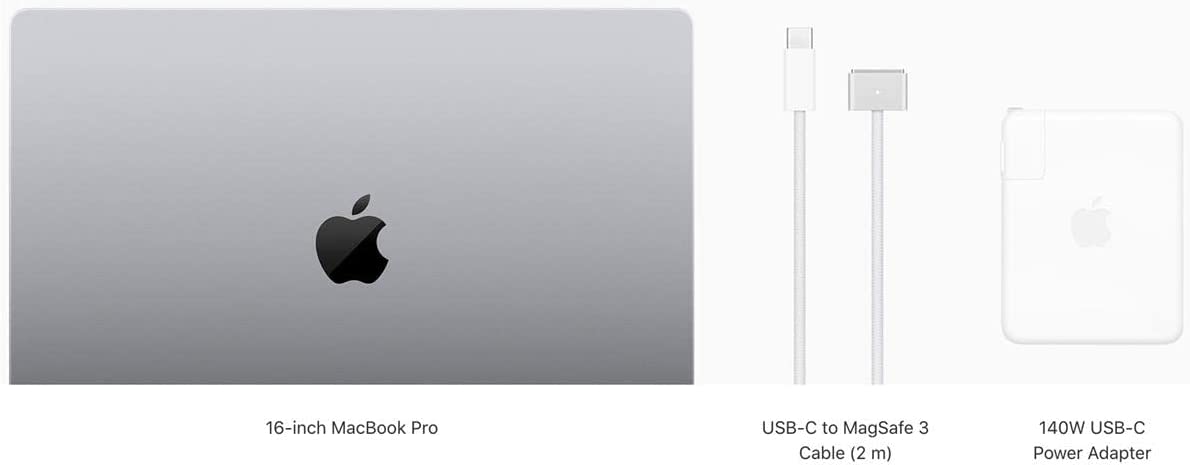 • Apple MacBook Pro 16" with Liquid Retina XDR Display - 140W USB-C Power Adapter - USB-C to MagSafe 3 Cable (2m) - Original Box