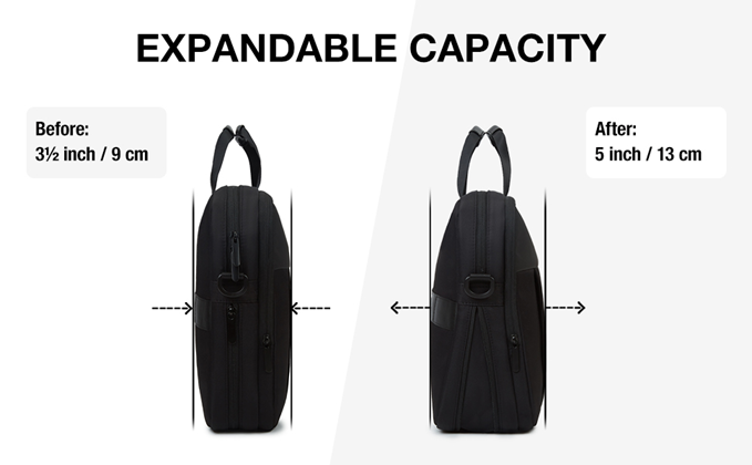 LightFlight 17.3 Inch Black Expandable laptop bag allows people to use it for all occasions. It can be a slim laptop bag, as well as a large travel briefcase when expansion zipper pulled. Its simplicity look is future-proof. Whether you are professional business person, college student or digital nomad, this computer bag would be a smart choice for you.
