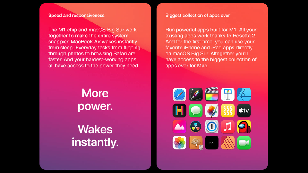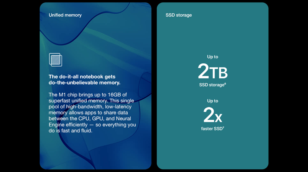 | Processor | System on Chip (SoC) Apple M1 chip; 8-core CPU with 4 performance cores and 4 efficiency cores; 16-core Neural Engine |
