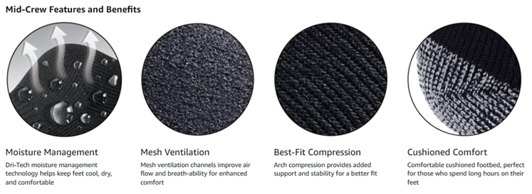 Dri-tech Moisture Control Sock Collection features: Moisture Management to help keep your feet cool, dry, and comfortable throughout the day.