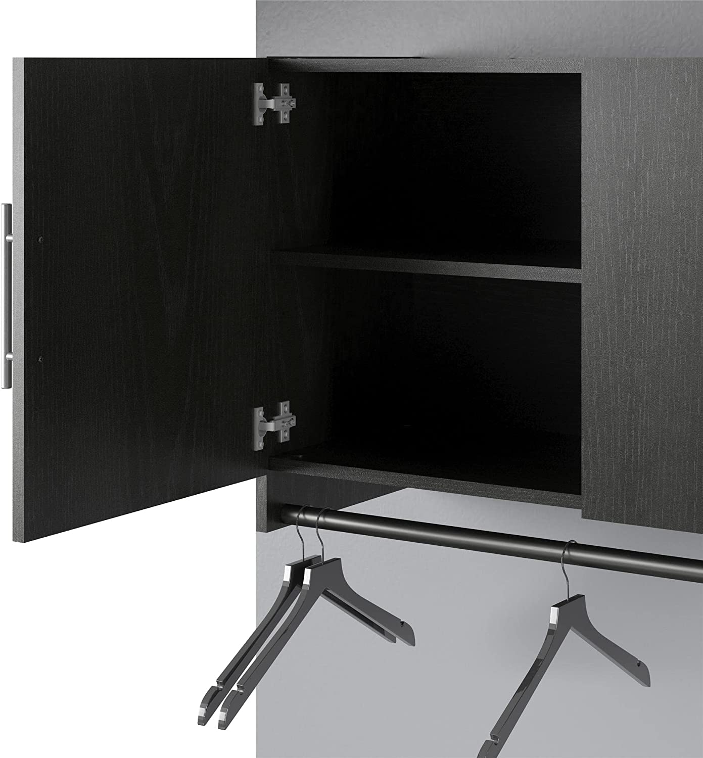 SystemBuild Camberly 3 Door Wall Cabinet with Hanging Rod, Black Oak