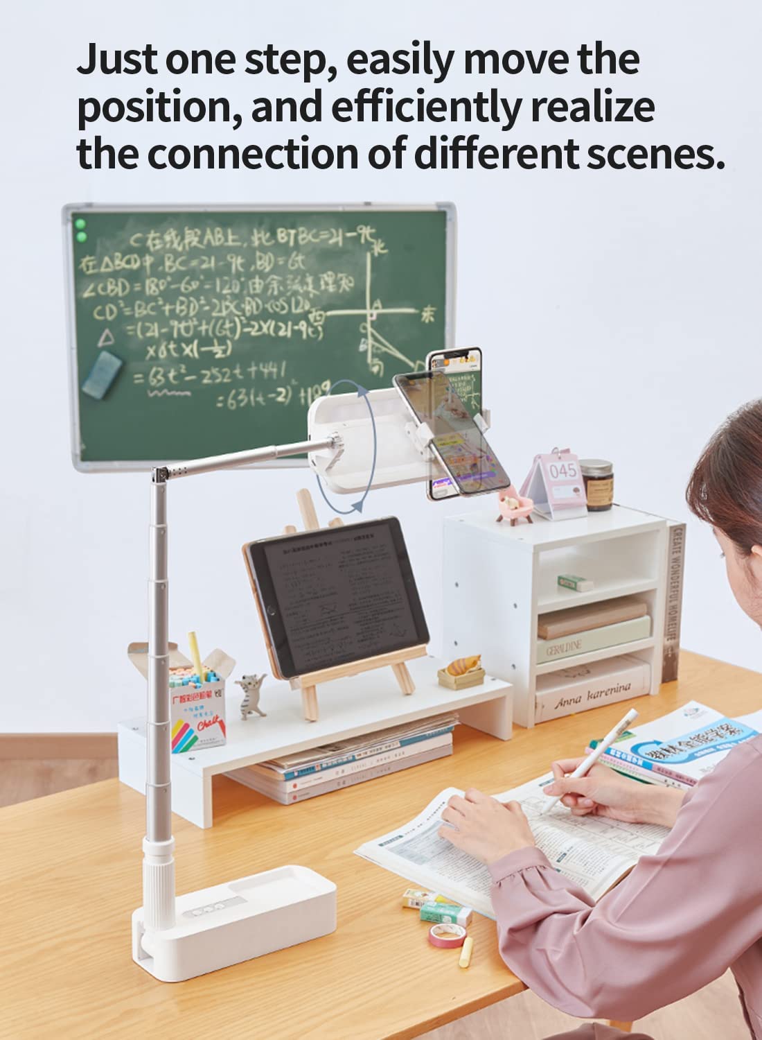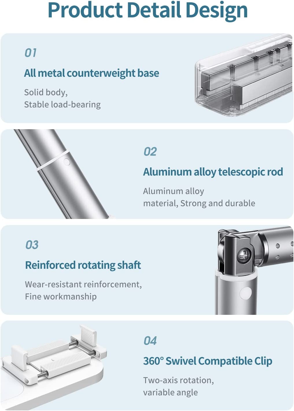 yAyusi Phone Stand for Recording,360° Rotation with Selfie Stands and Phone Holders,Overhead Phone Mount,1000mAh Battery Operated 7 Brightness LED Light for Live Streaming/Video Recording (White)