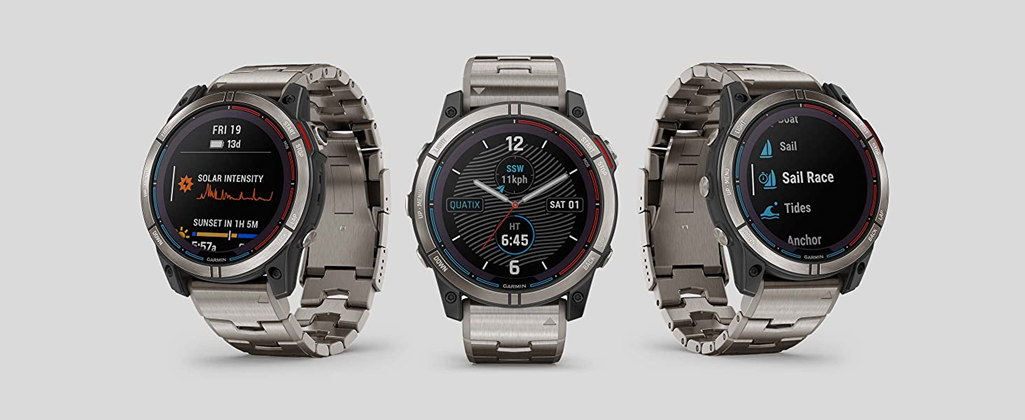 Plot your paradise on the water and beyond with quatix® 7X – Solar Edition, the multisport GPS smartwatch that has all the features you need on your boat and the ones you want off it, including solar charging. quatix 7X – Solar Edition provides comprehensive connectivity with compatible Garmin chartplotters and other compatible marine devices to offer autopilot control, data streaming, Fusion-Link™ entertainment system control, integrated tide data on the watch face, new alarms for better situational awareness and much more. Use traditional button controls or the new touchscreen interface to access selections. This smartwatch includes preloaded maps for thousands of golf courses and ski resorts worldwide and has preloaded TopoActive maps for outdoor adventures. When paired with your compatible smartphone, enjoy advanced smartwatch features for all-day wearability include built-in activity profiles for water and land sports, performance metrics, smart notifications, 24/7 health monitoring, access to the Garmin Connect™ app and Garmin Pay™ contactless payments (with a supported country and payment network)