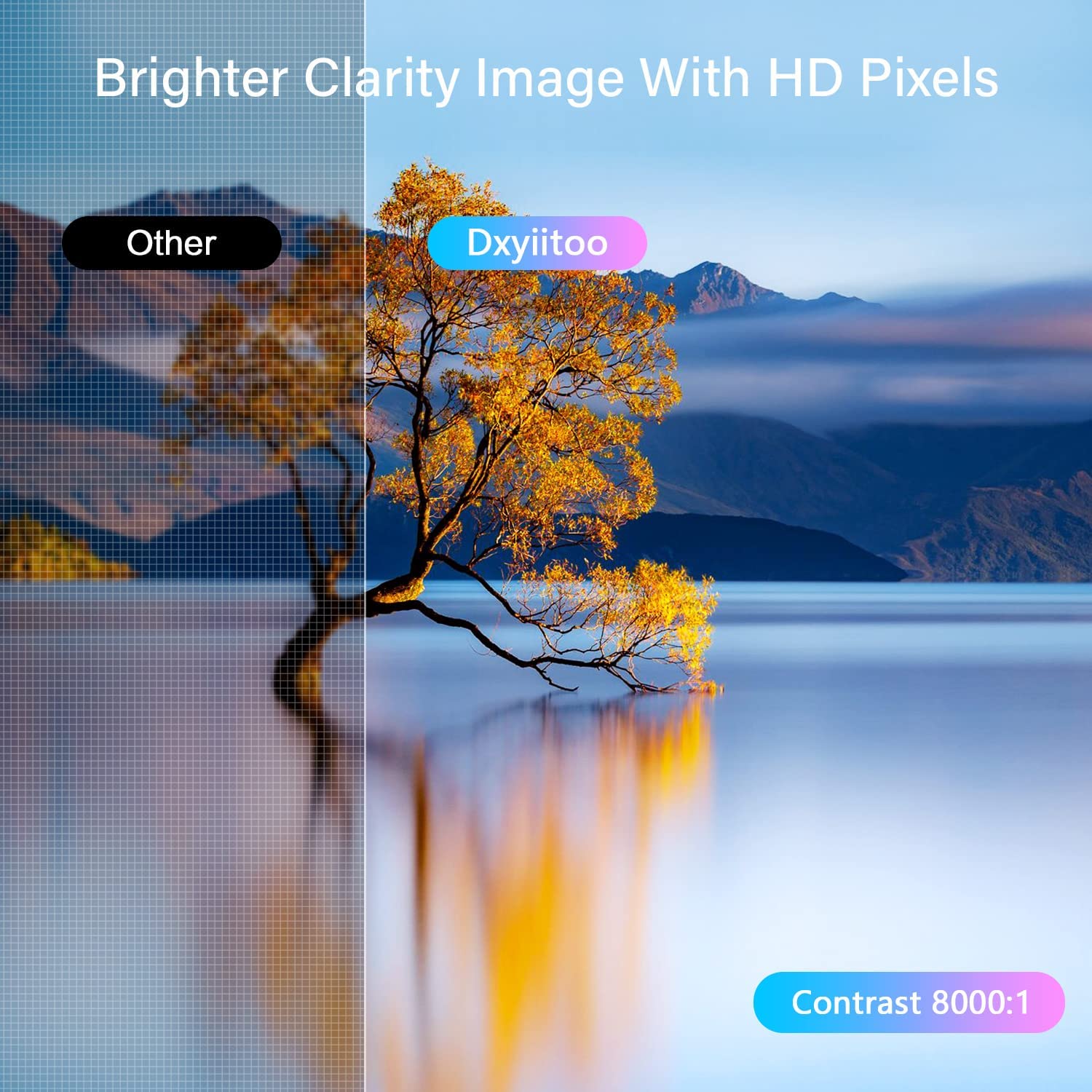 • ?【Upgraded HD 1080p Supported】 To meet our customer's new needs, Dxyiitoo has improved not only Increase brightness by 40%, With 1080P resolution supported ,The contrast ratio was upgraded to 8,000:1, but also extended the life of the bulb to 60,000 hours which is ideal for home entertainment.