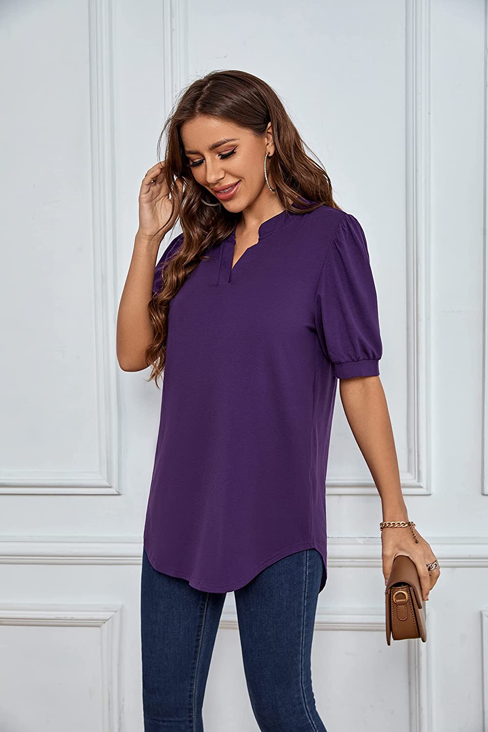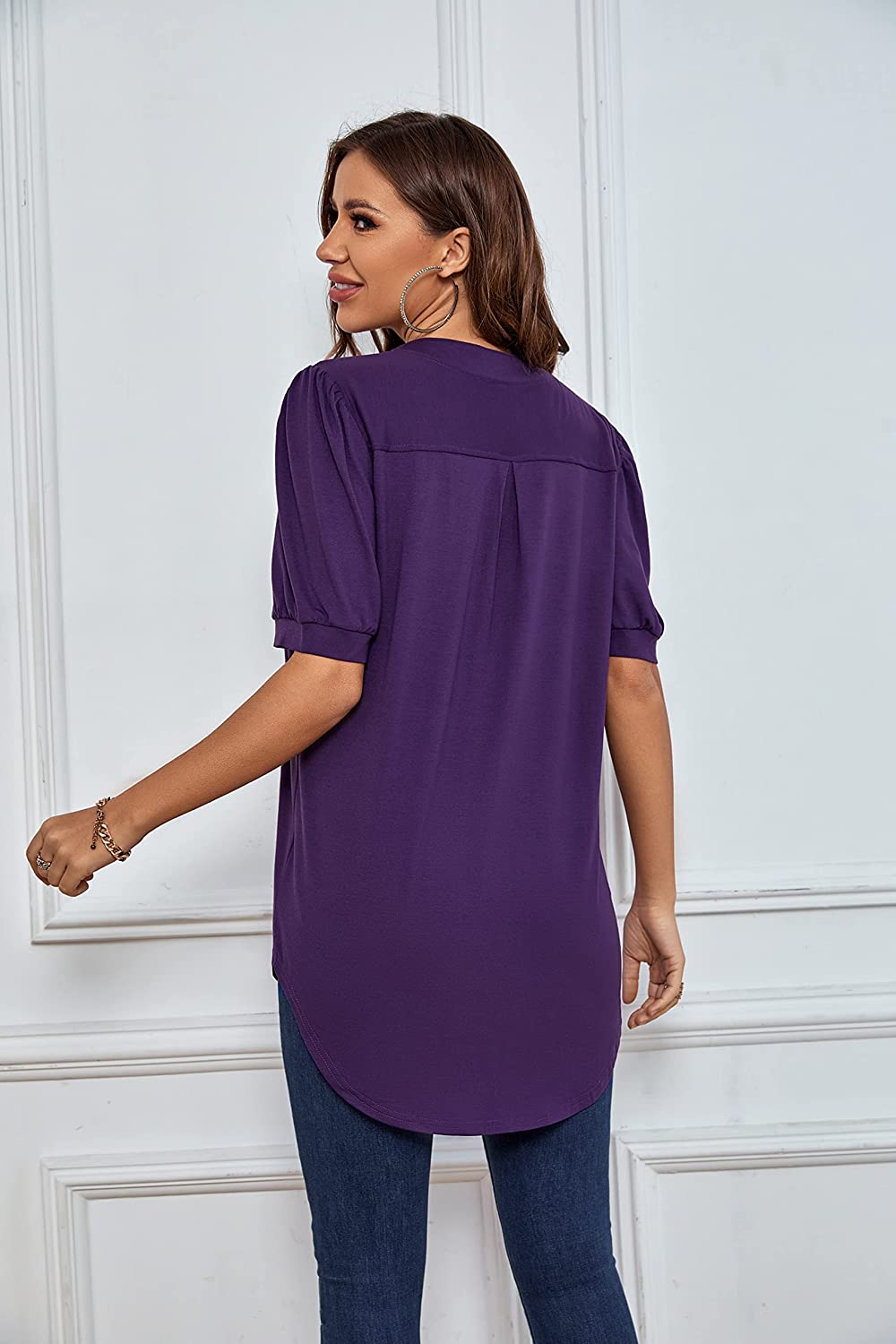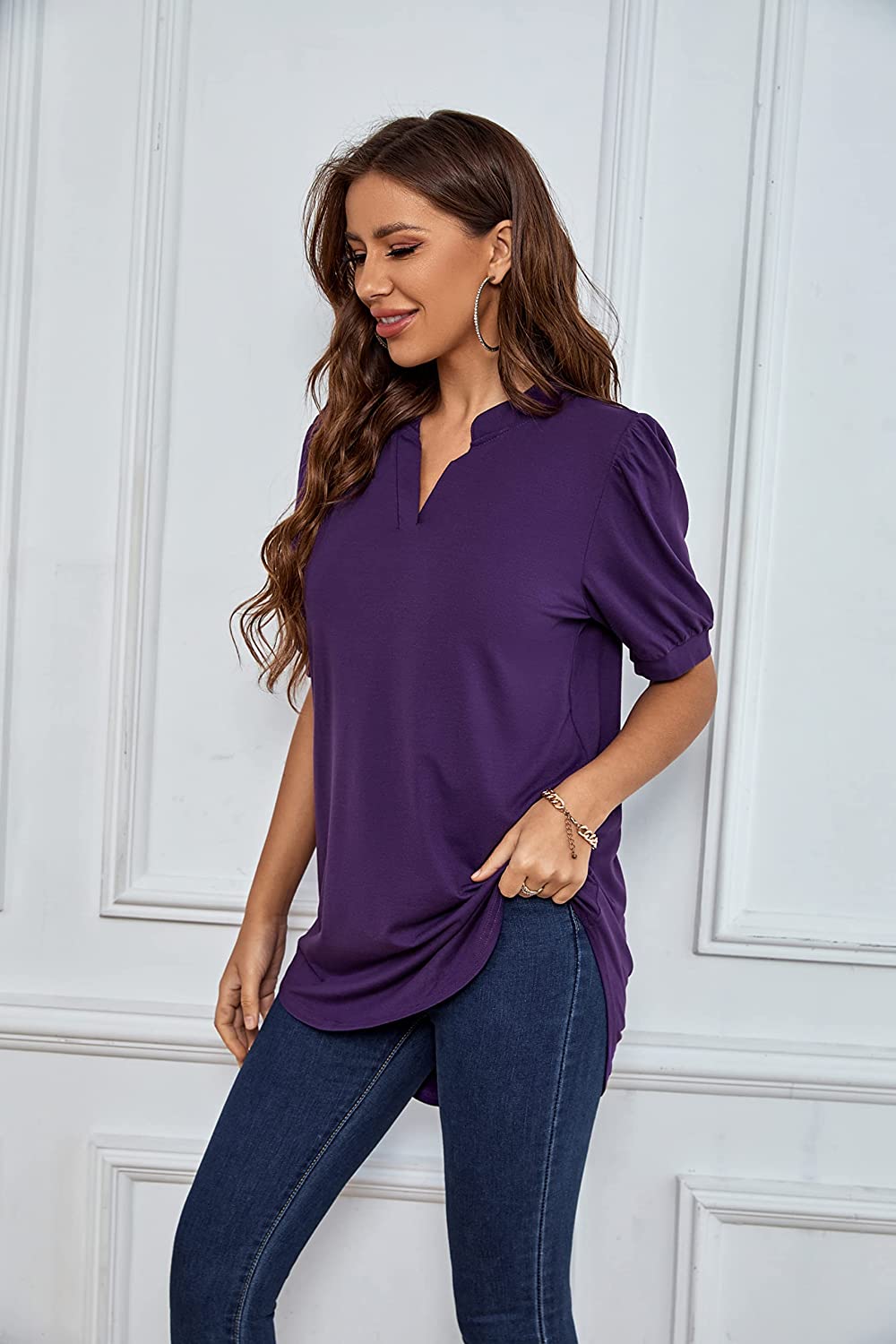 • This shirt also features a v-neckline, cute collar detail, roll up 3/4 sleeves, a rounded hemline, and a trendy high-low cut! From the boardroom to the backyard, this beautiful tunic will have your heart all season long! Great choice for date, casual, daily life, work, vacation, outdoor, party, shopping.