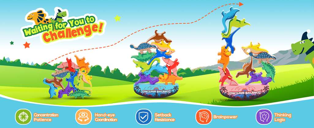 • ?Family party Game?: The two set of dinosaur blocks support a balance competition game for kids and aldult, Let's see who can stack higher!
