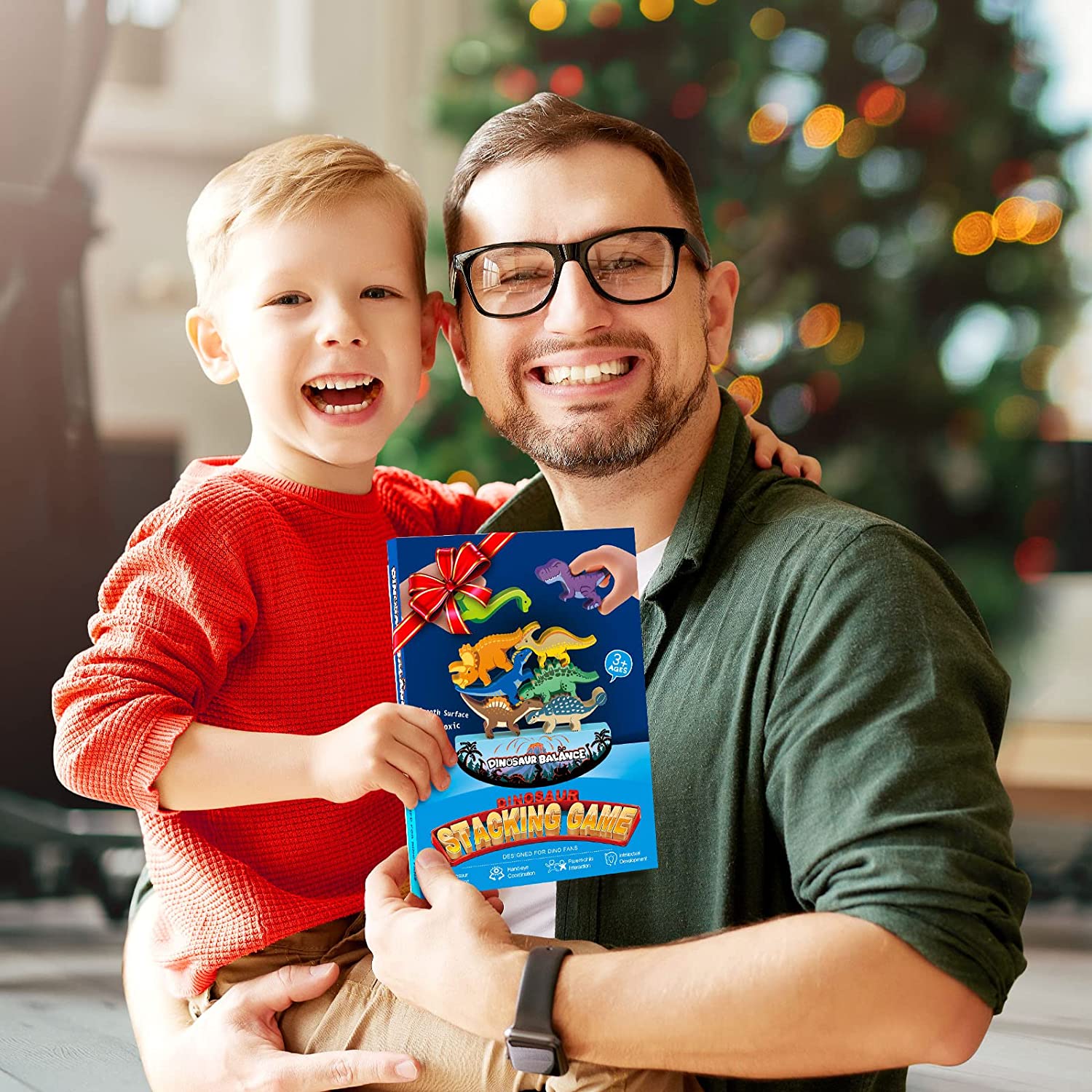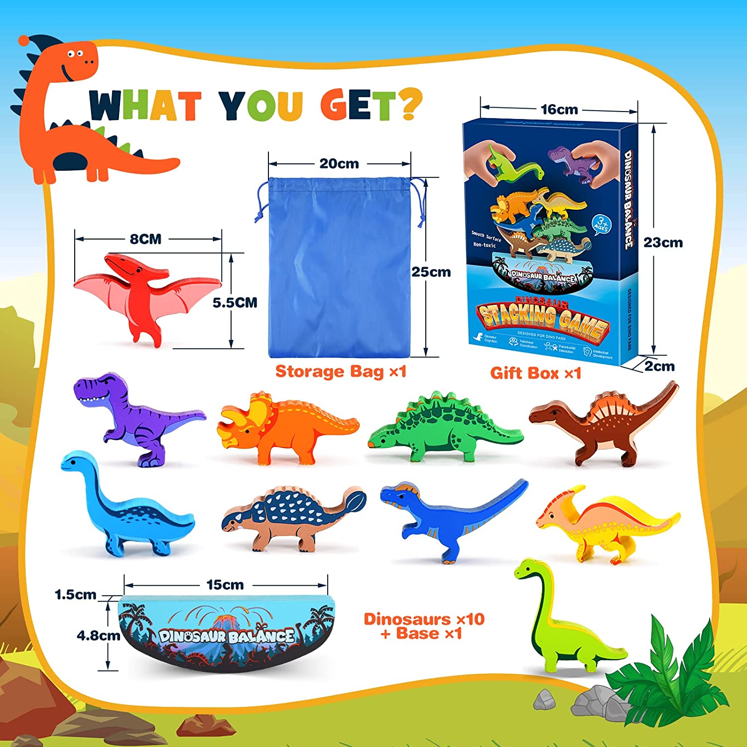 IPOURUP Dinosaur Toys for Kids 3-5: Wooden Stacking Montessori Toys for 3-7 Year Old Balance Competition Game for Family Ideal Easter and Birthday Gifts for Kids (Classic Version)