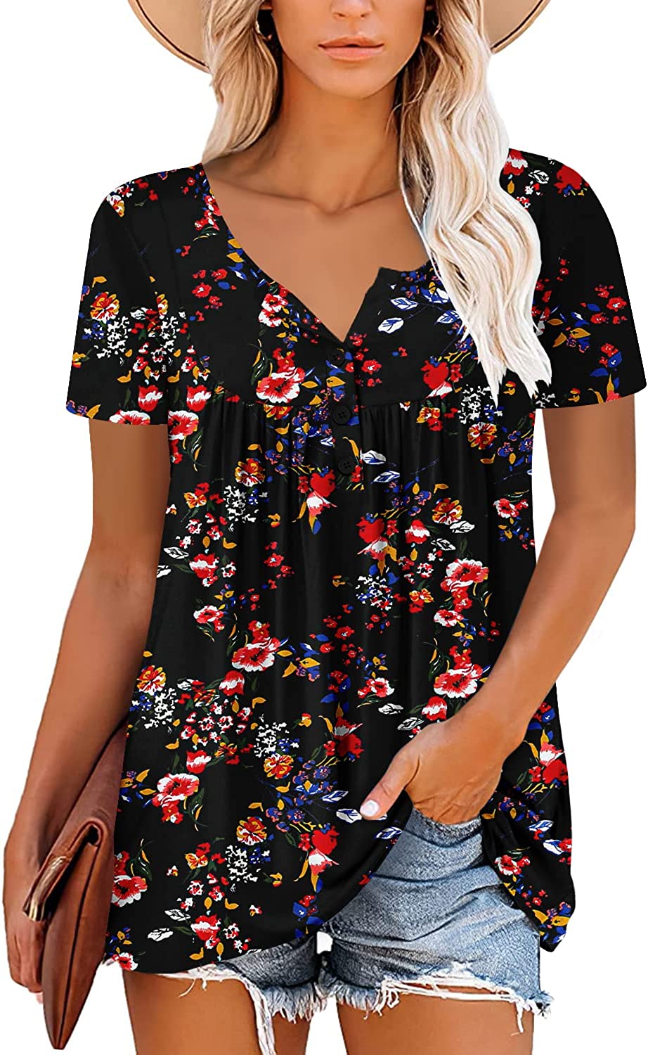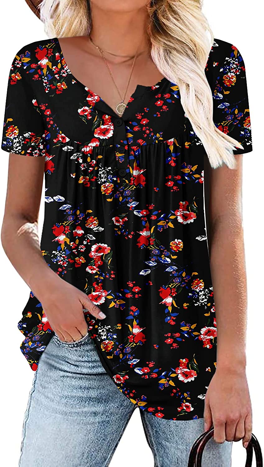This floral tunic tops perfect for wear with jeans or leggings in spring, summer, fall or winter.