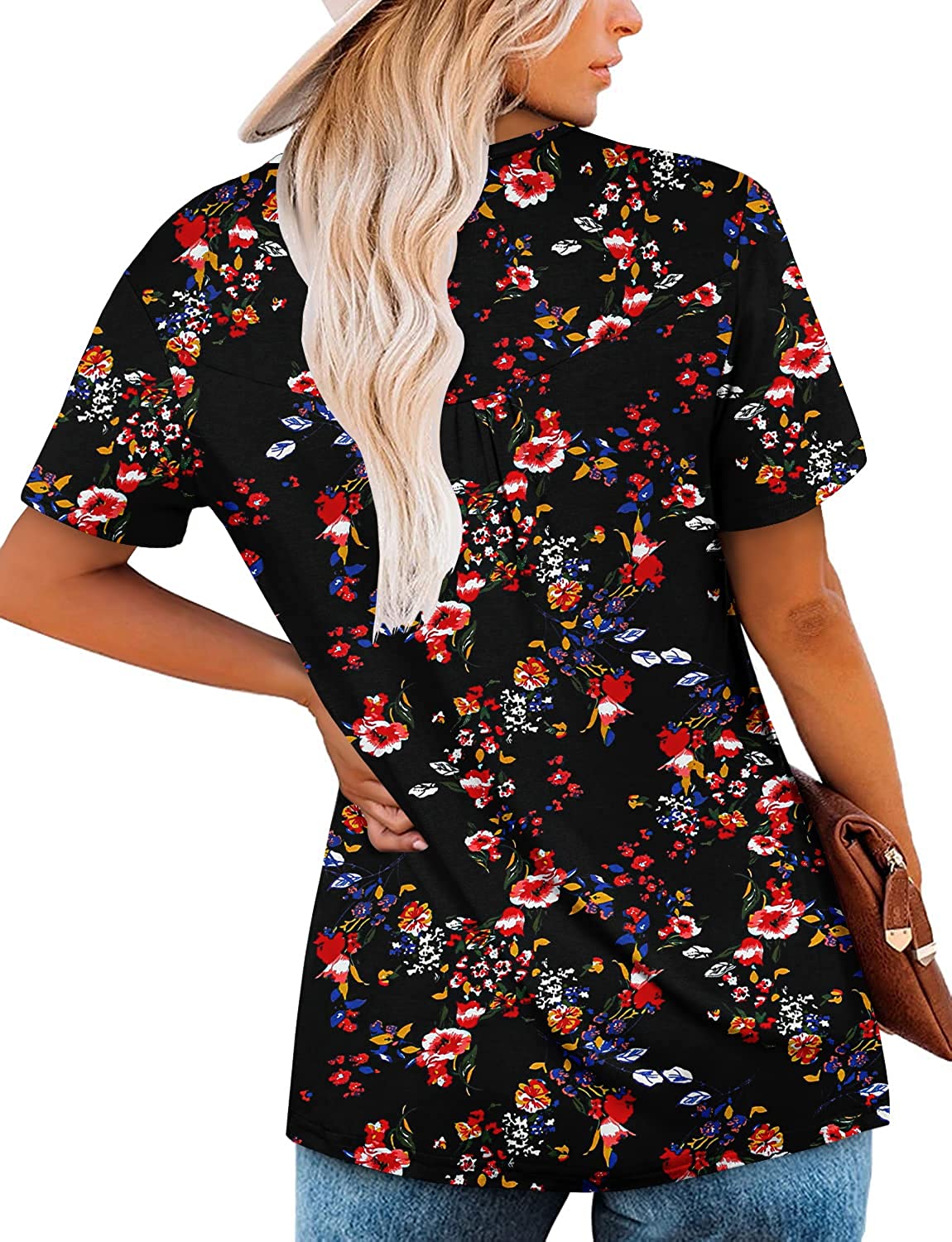 Feature:Womens Casual V neck short sleeve blouse tops, floral print,ruffle design,loose fit,trendy and elegant.