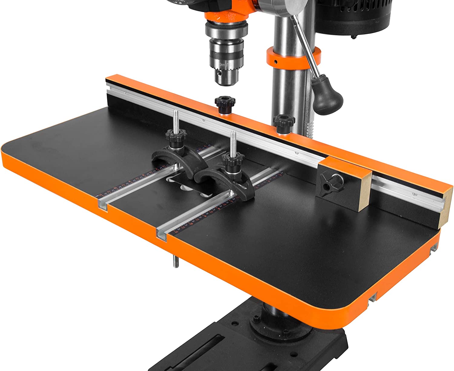 Remember when you could drill into your big old workpieces? Take your drill press to the next level with the WEN Drill Press Table. The spacious 23-7/8-by-11-7/8-inch table creates additional support for larger workpieces. The sturdy 1-inch thick MDF body prevents warping and wobbling during operation. Onboard rulers maximize accuracy for precise and even cuts while the adjustable 23-5/8 in. x 2 in. fence and stop block allow you to perfectly line up any project. The removable insert allows users to drill completely through their workpiece without damaging the table. Our unique table design provides clearance for the drill press’ height adjustment crank, making for easy vertical adjustments of your table. Compatible with the entire line of WEN drill presses, including the WEN 8-Inch Drill Press (models 4206 and 4208), the WEN 10-Inch Drill Press (models 4210, 4210T & 4212), the WEN 12-Inch Drill Press (model 4214), the WEN 15-Inch Drill Press (model 4225), and the WEN 17-Inch Drill Press (model 4227). Although this drill press was designed with WEN in mind, its universal fit allows for installation on drill presses of all shapes and sizes. Simply tighten the included mounting clamps onto tables anywhere from 4 to 22 inches in width. This unit also comes with extra mounting clamps that double as hold down clamps to ensure your workpiece stays secure while drilling. And, because it’s a WEN product. all to make sure you remember WEN.