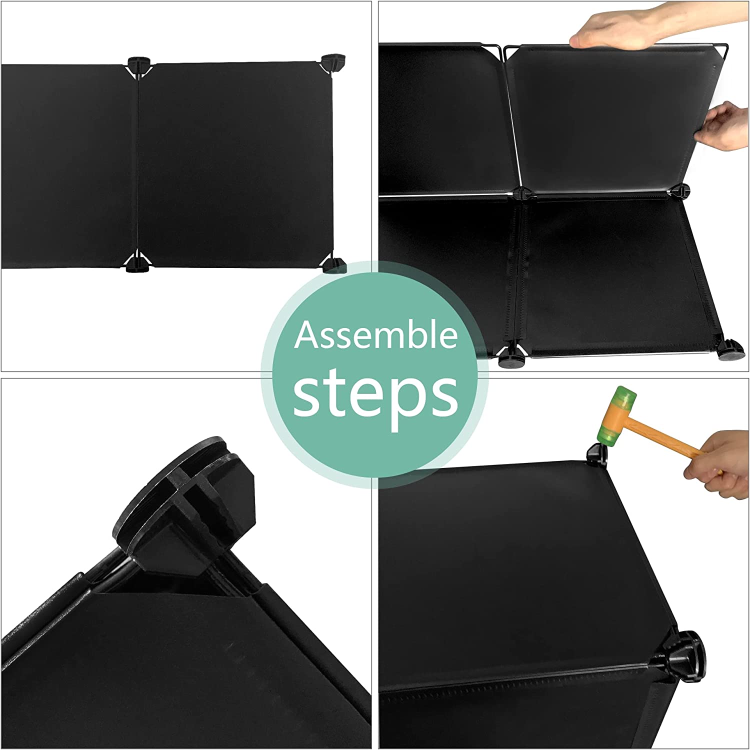 Easy to Assemble and Disassemble: Please read the instructions carefully before assembly. It's a simple modular structure, simply insert the panels into the slots of connectors, then tap with the included plastic hammer, you can easily assemble this shelf