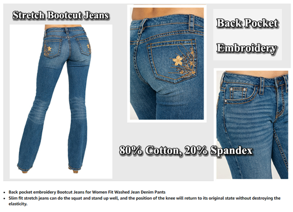 [Features]: Zipper button closure, bootcut jeans, stylish slim jeans with embroidery bell bottom jeans, mid-waist bootcut jeans.