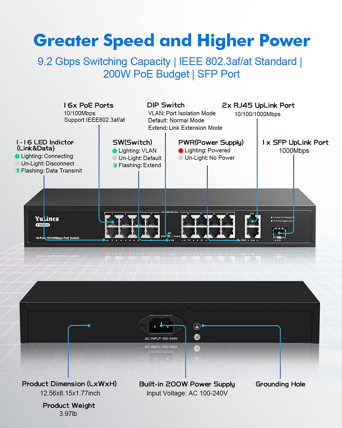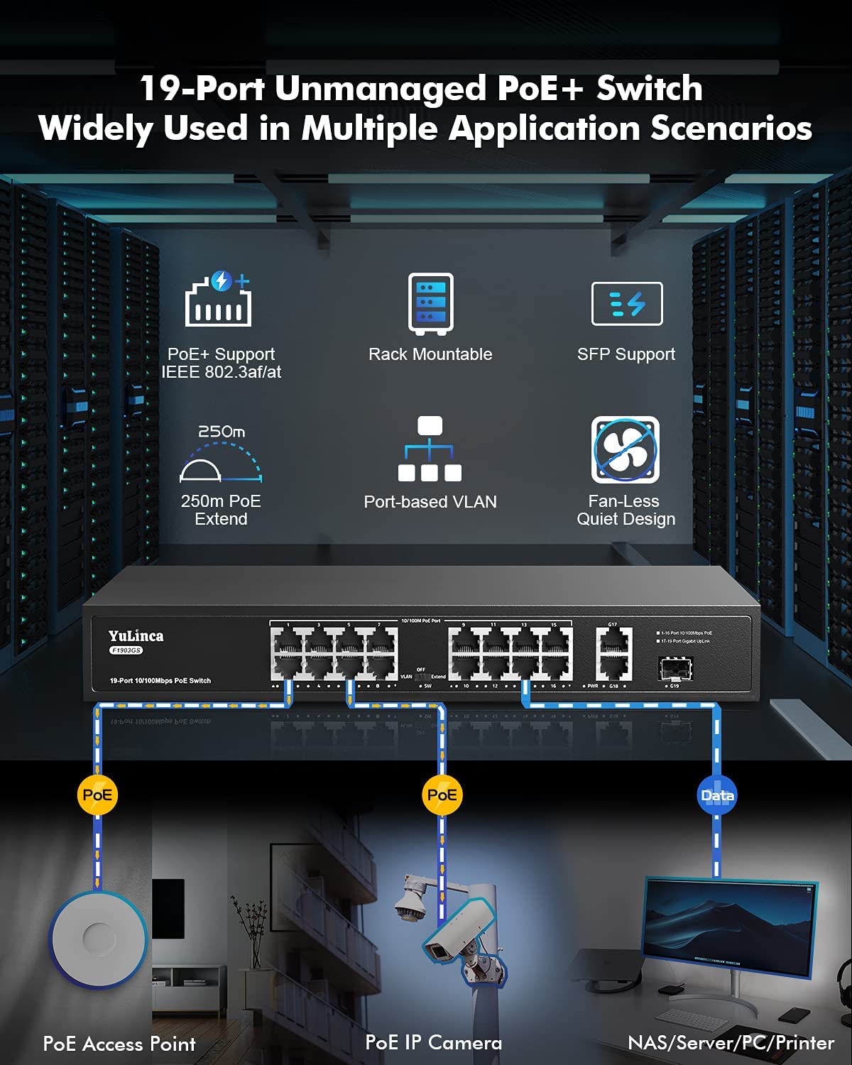 • Widely Used: metal case, fanless silent, double side vents; with hanging ears, support desktop and wall mounting. Stable POE and switching chips, 2 uplink, can be used in various networks of home, office, project and business.