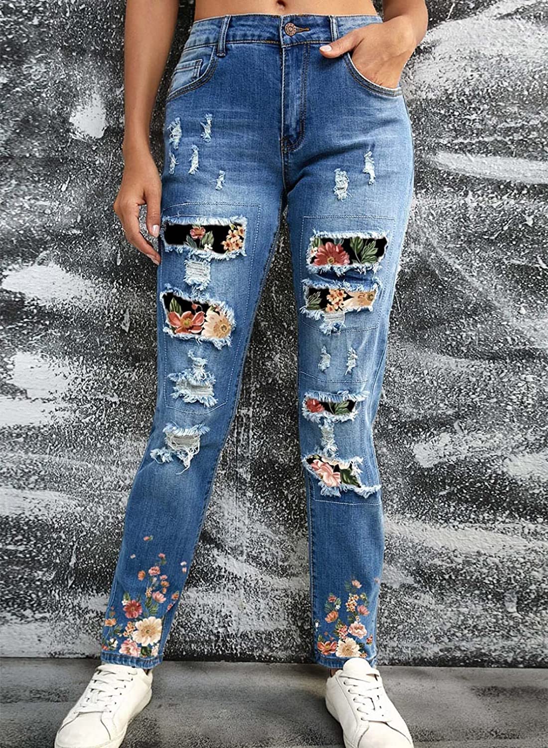 Occasions:Democracy patchwork jeans jeans for women suitable for casual, daily wear,shopping, home, hang out, beach, vacation or office, work, this ripped jeans is definitely decent choice.