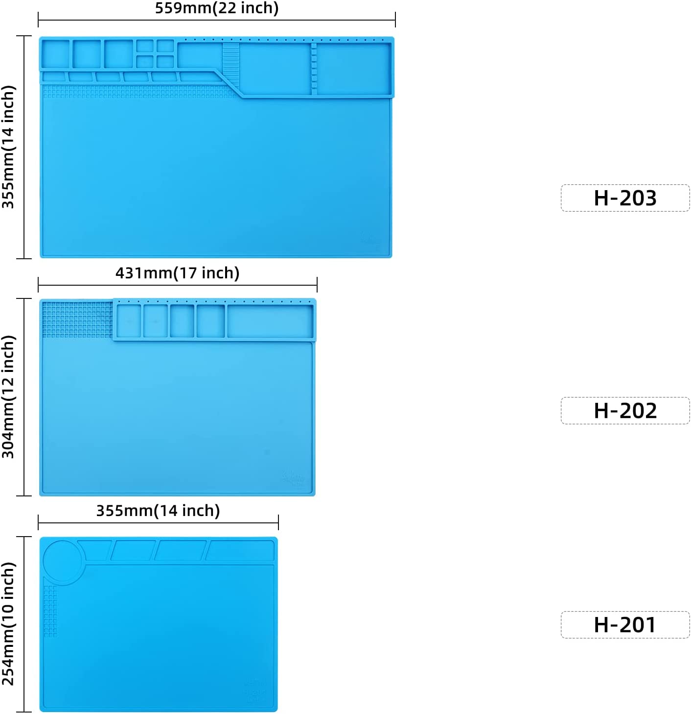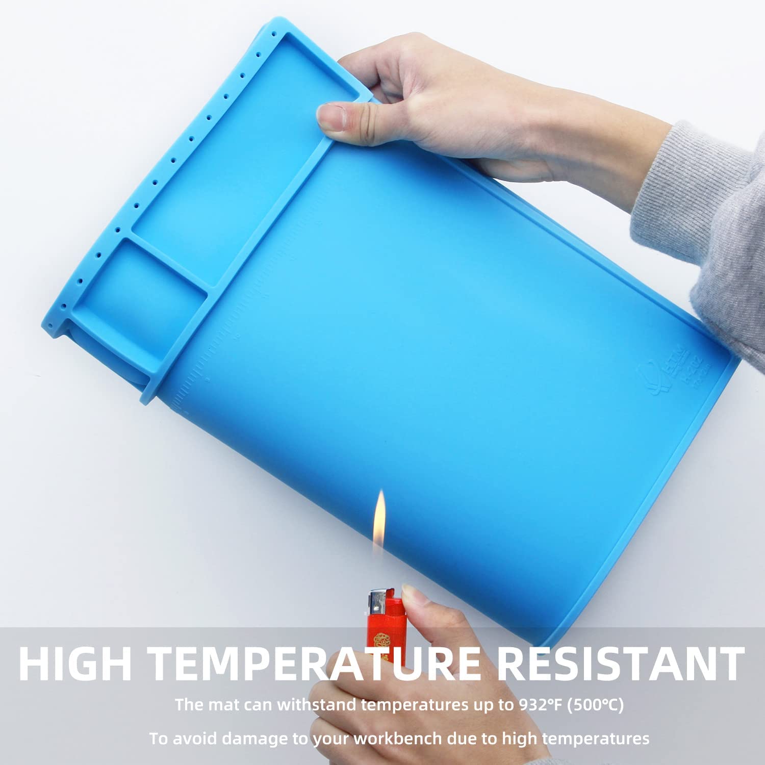 • 【Heat Resistant】Heat insulation soldering mat are made of high quality silicone and can withstand temperatures up to 932°F (500°C), thus protecting your workbench from damage caused by high temperatures