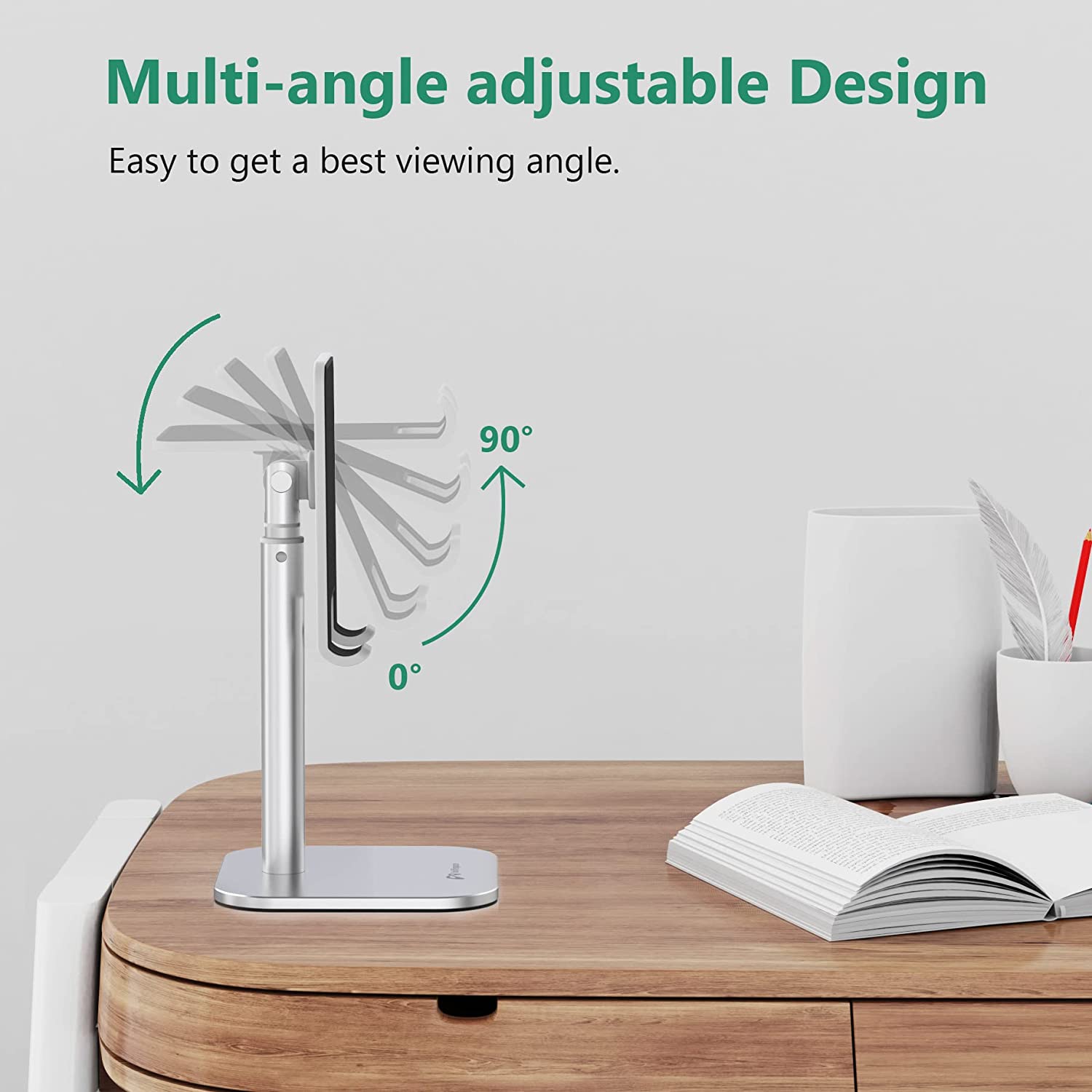 【Wider Compatibility】 Desktop tablet stand holder is compatible with 4.7''-13'' screen cellphones and tablets, Such as such as new 2020 iPad Pro 11 / 12.9, iPad Air 4, 2018 iPad Pro 9.7 / 10.5, iPad Air mini, Microsoft Surface Pro series, Kindle Paper white, Fire HD 7 8 10, E-reader, Samsung Galaxy Tab series and more.