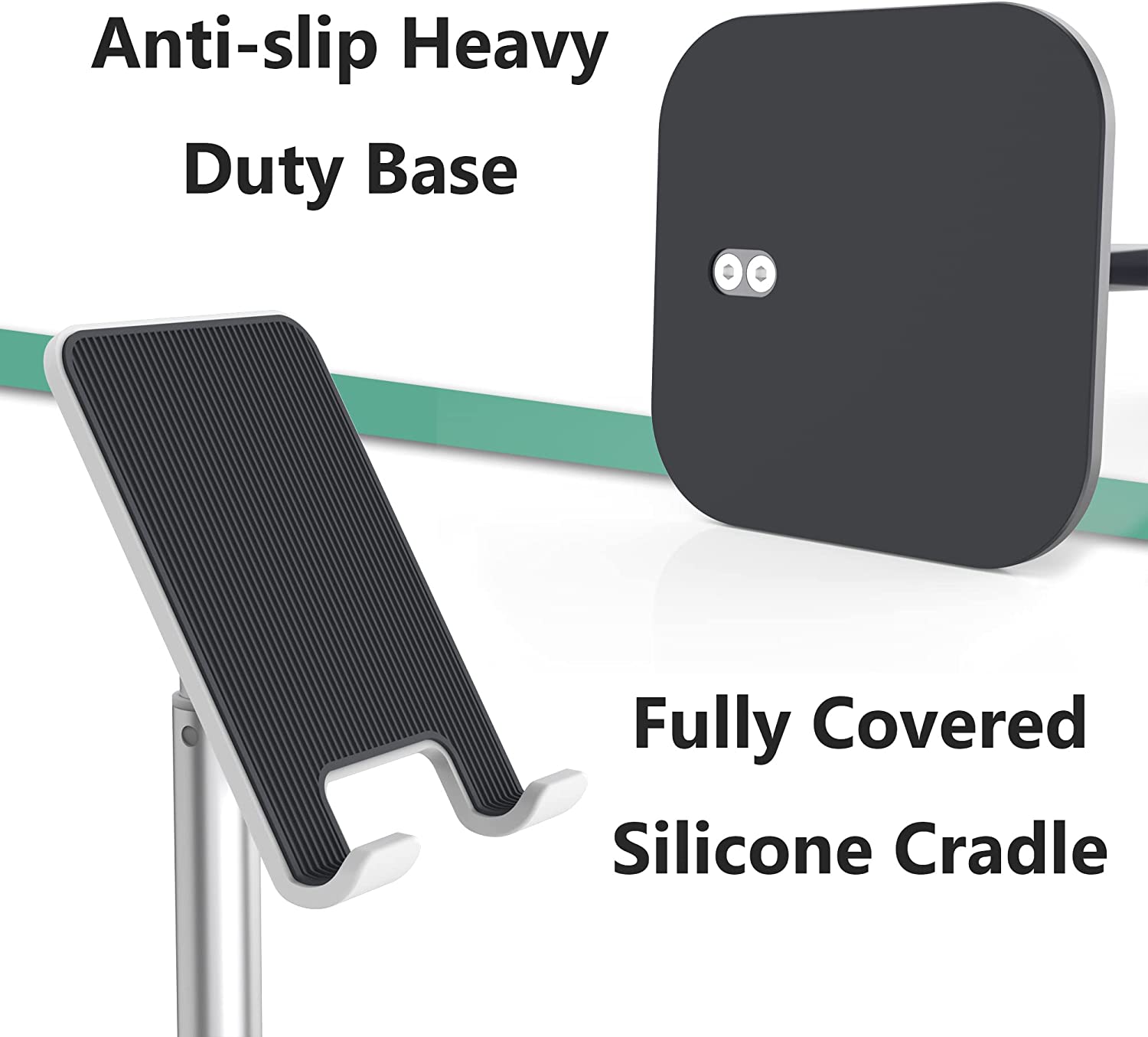 【Reserved Charging Hole & Rubber Cushions】 There is a reserved charging hole convenient for you to charge your devices while using iPad stand for desk. The fully covered silicone cradle and anti-slip heavy duty base provide full protection for your device from any scratches and slide.
