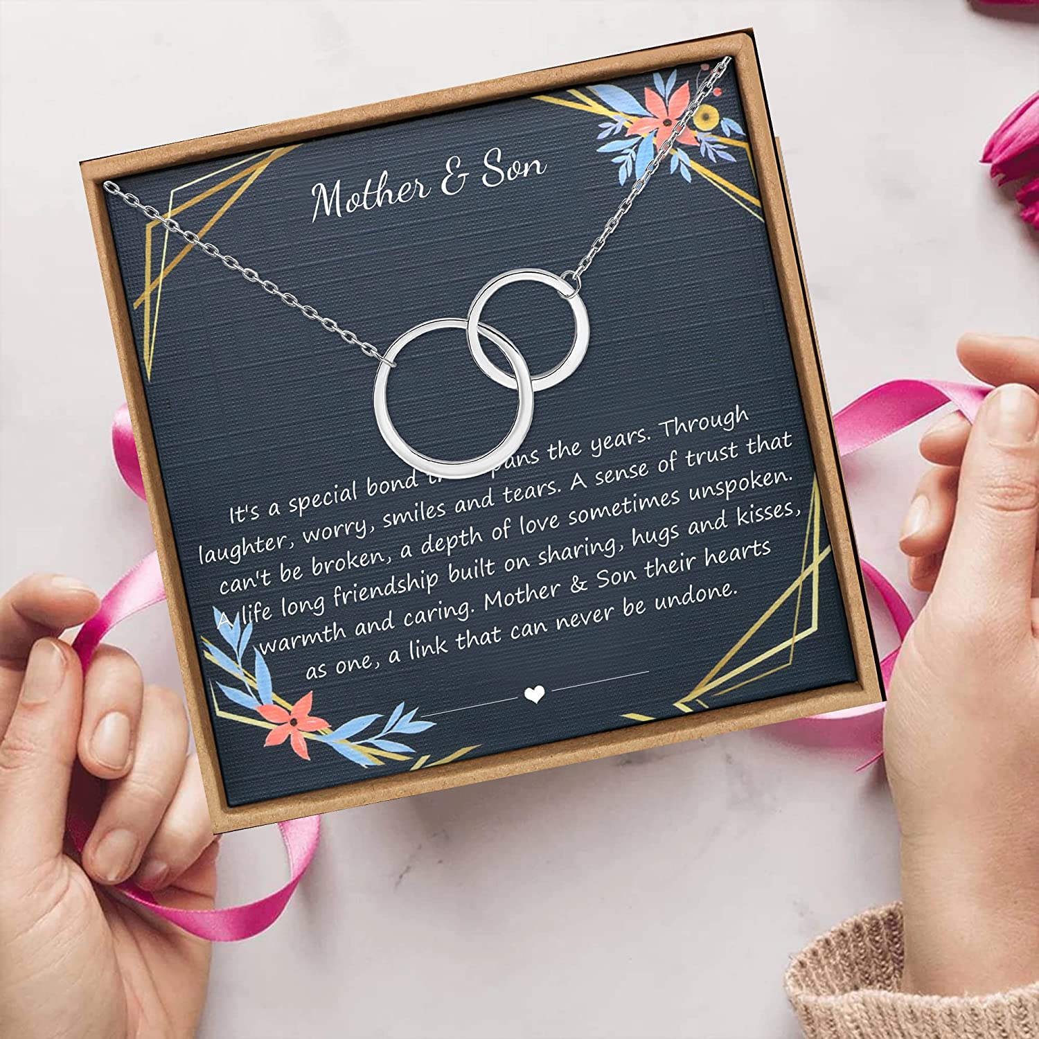 • MEANINGFUL MOTHER&SON GIFTS:Two interlocking circles design just like the bond between mother and son is infinite, they always connect heart by heart. For all the time you forget to say thank you, and the words you unspoken is I love you. Give this full of love necklace,  thank her for everything that ther do for us.