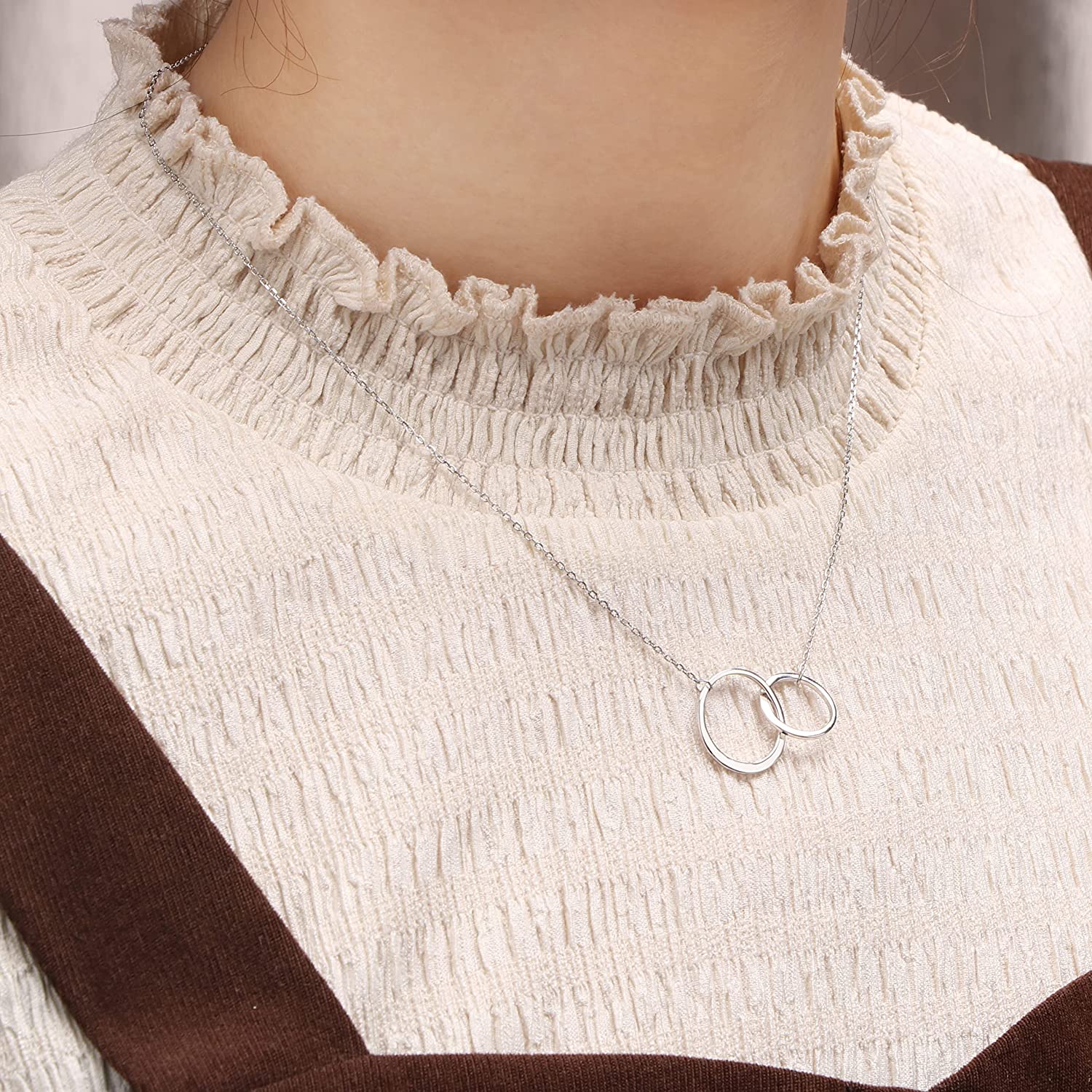 • MATERIALS: The interlocking circles pendant is finised with 925 Sterling Silver, WON'T irritate your skin turn green, black, red or itchy. Dainty but strong chain with spring ring clasp more exquisite and easy to use. The mom love is unique, receiving  gifts is an absolute surprise, with meaningful and elegant design, suit for every occasion.