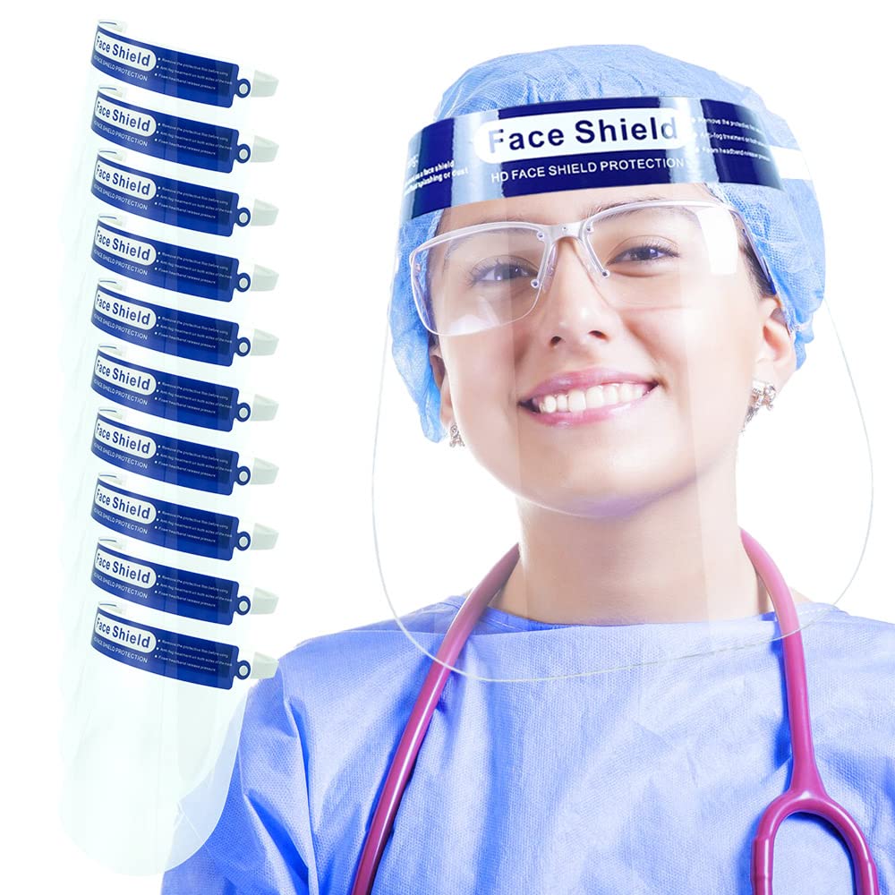 Clear face shield for adults: Adult anti fog face shield for women and men. Lightweight and portable ,keeping these anti fog face shield mask in your backpack, home, workplace or car so that you can use plastic face shield mask outdoors, kitchen and office to protect your health anytime.