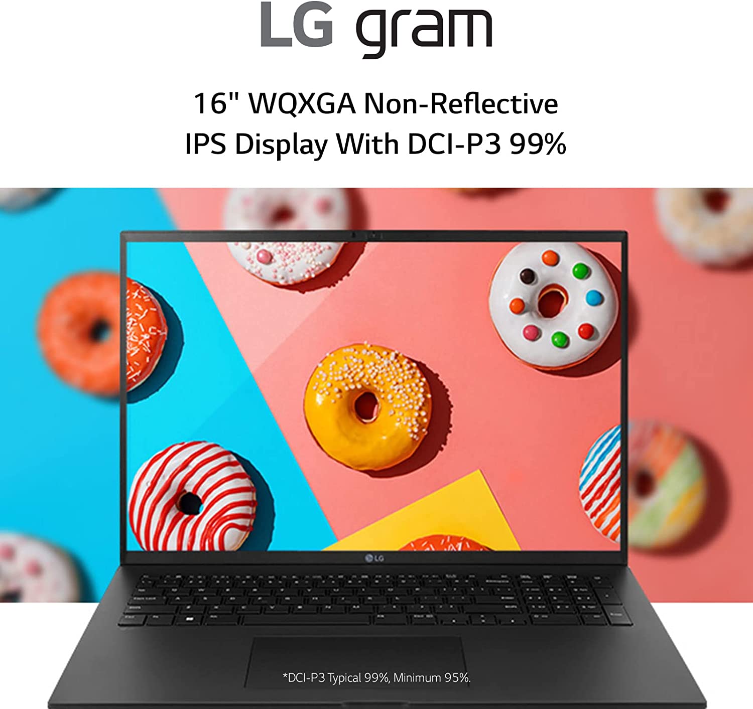 LG gram (2022) Laptop 16Z90Q 16" Display, Intel Evo 12th Gen Core i7, 16GB RAM, 256 GB SSD, Windows 11, Black