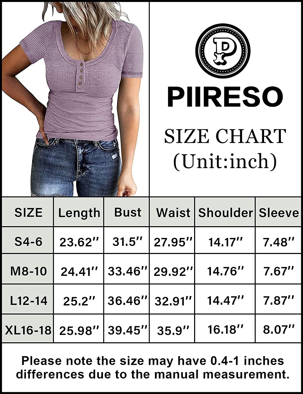 PIIRESO Women's Short Sleeve Button Scoop Neck Ribbed Shirts Summer Casual Solid Color Henley Top