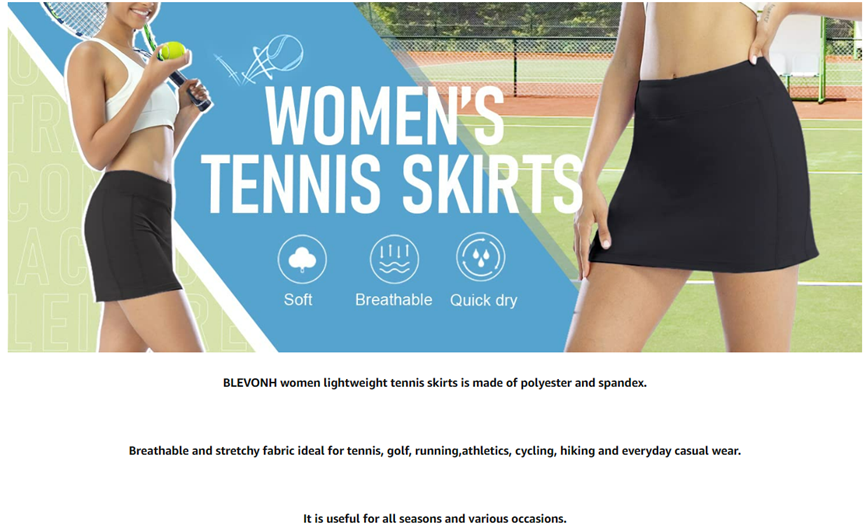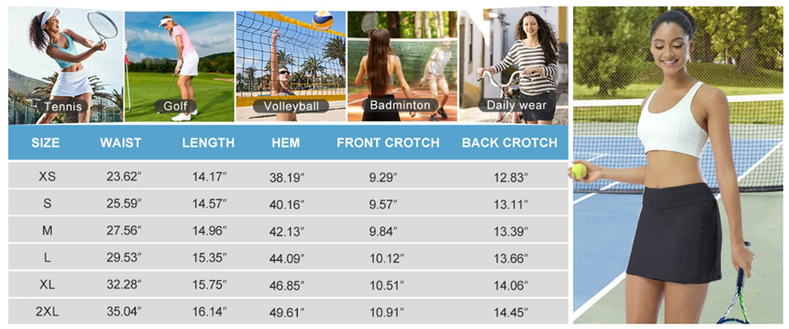 Occasions:Athletics skorts are great for tennis ,golf ,volleyball pickball,badminton,running,jogging biking,beach and casual.
