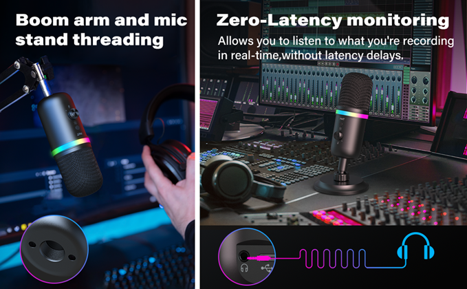 • EASY INSTALLATION AND VERSATILITY: Without any assembly, you can use this computer microphone by simply plugging in a USB Type-C cable. You can install the mic on a standard boom arm just by remove desk stand.